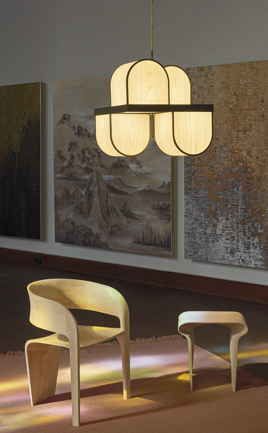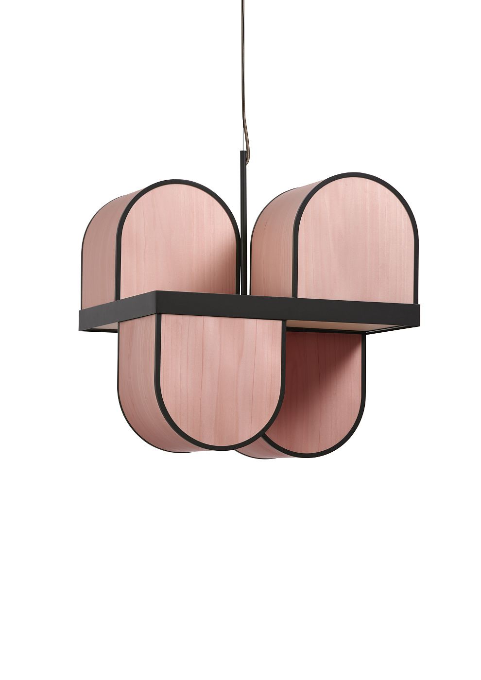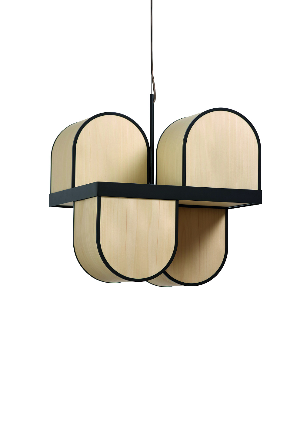 OSCA — это светильник, вдохновленный архитектурой и эстетикой кубизма. В подвесном светильнике Osca простые, переплетающиеся трехмерные арки из деревянного шпона обращены как вверх, так и вниз, придавая светильнику уникальную скульптурную форму. Созданный Бодо Сперлейном, Osca представляет собой минималистичный коллаж из фигур. Семейство Osca состоит из двух подвесных версий и одной настольной лампы.
