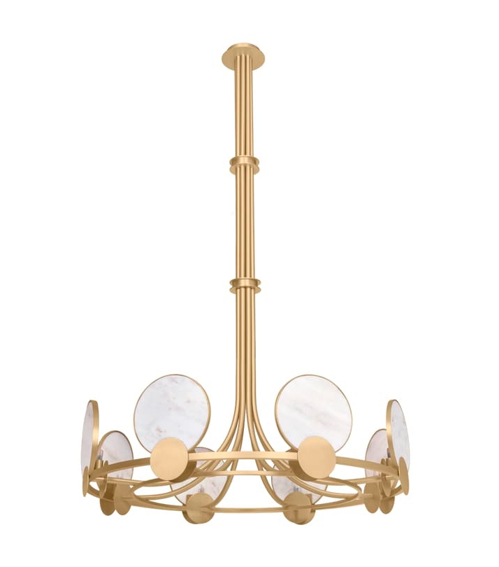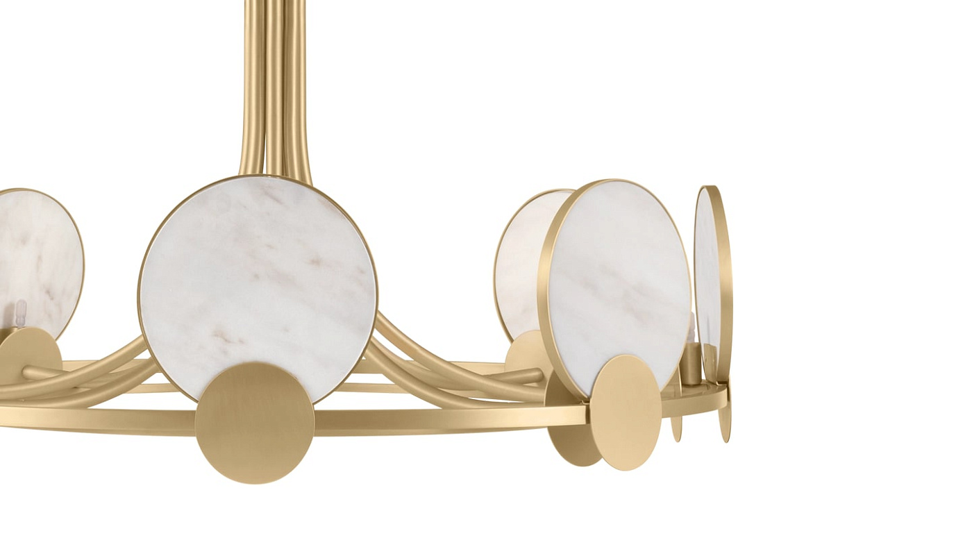 Эффектный подвесной светильник PETRA от FRATO, который придаст драматизма любому помещению в доме, сочетает в себе стойкое тепло матовой латуни с поразительным круглым дизайном из накладывающихся друг на друга дисков из латуни и светлого камня. Неподвластный времени и уникальный, этот прекрасно выполненный кулон отбрасывает тонкий свет, но в то же время создает потрясающий акцент.