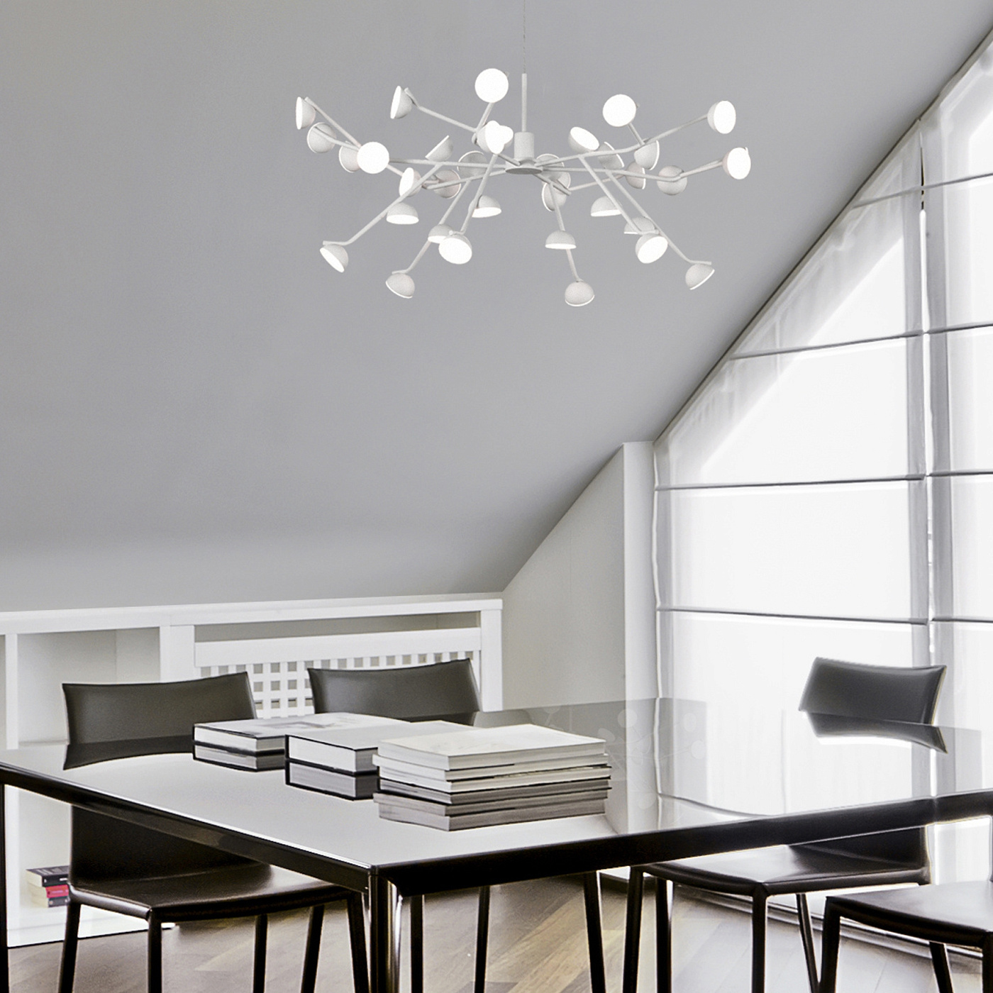Произвольное распределение световых точек в коллекции ADN вдохновлено образом нитей ДНК. Визуально сбалансированный дизайн впишется в спокойный интерьер в скандинавском стиле. Светильники ADN придадут характер и индивидуальность вашему пространству. Они поддержат рабочую и дружелюбную атмосферу в кабинете или офисе. Коллекция предназначена для размеренного пространства, создавая ощущение благополучия и чистоты. Круглые подвесные люстры доступны в двух размерах, наряду с линейным подвесным вариантом, также коллекция включает в себя потолочные, настольные, настенные светильники и торшер. Светильники AND выполнены в матовом белом и черном цвете. Такой широкий ассортимент поможет поддержать общий стиль просторных помещений, сохраняя разнообразие в проекте.