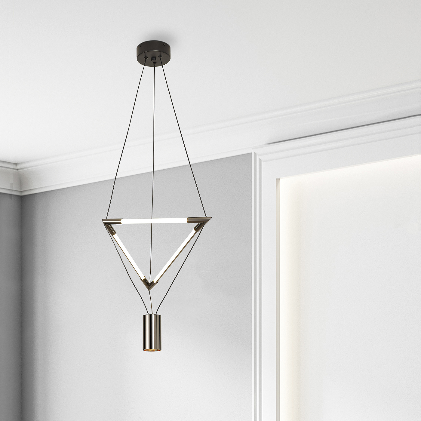 Понятие “архитектурного света” компания Мантра воплотила в подвесной серии Electra. Изящный и геометричный светильник состоит из светового треугольника неправильной формы, дающего равномерный свет, ниже, словно утяжелитель, расположен металлический цилиндр-светильник с направленным светом. Тонкие тросовые системы крепления и формообразования делают его воздушным и парящим в воздухе. Он заполняет собой подпотолочное пространство и напоминает скорее арт-объект. Серия предлагает разные размеры световых треугольников и композиции из них. Графичное сочетание черных и никелированных элементов делают его заметным в любом современном интерьере. Electra идеально впишется в гостиные, спальни, коридоры, столовые и кабинеты. Собирая в композиции подвесы, вы безусловно сделаете также авторскими общественные интерьеры офисов и ресторанов.