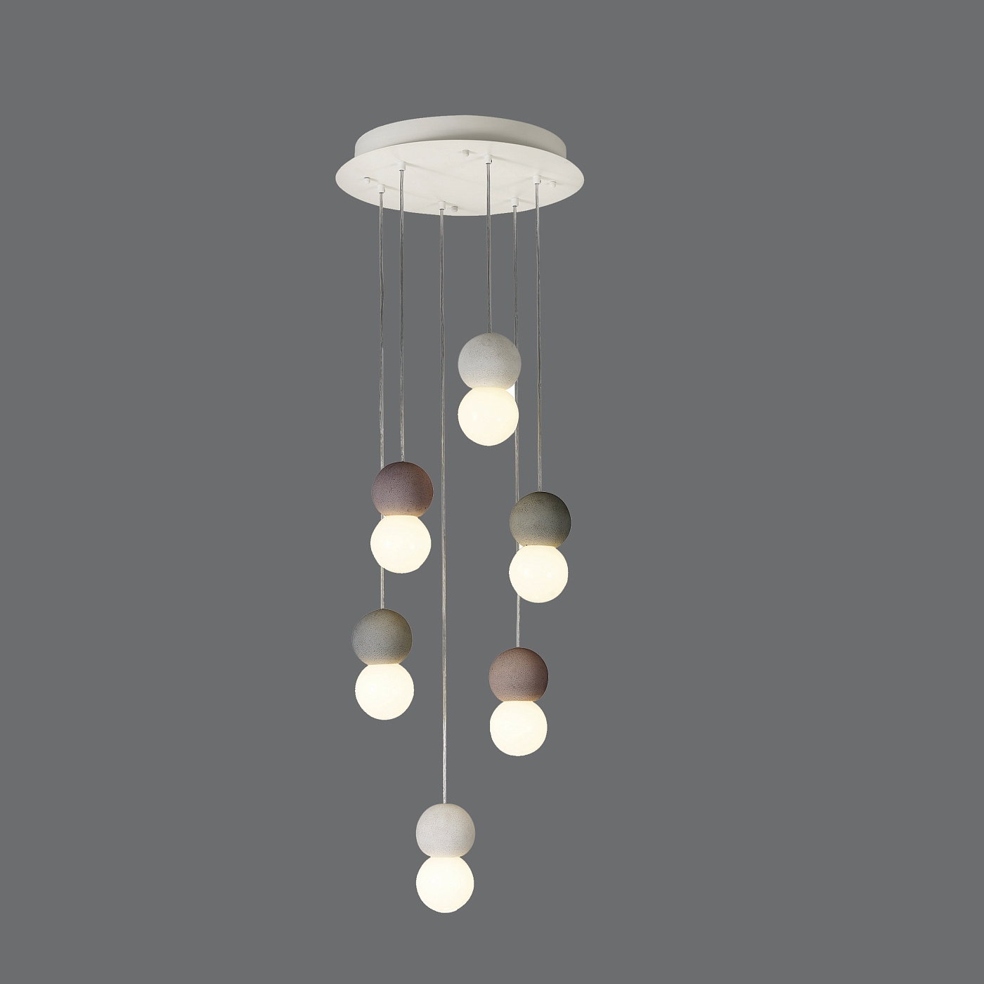 GALAXIA получила свое название из-за визуальной концепции своего оригинального дизайна. Парящие в воздухе, сферы напоминают галактику, заполненную планетами и светящимися космическими телами. Сочетание маленьких светодиодных сфер с комбинацией цементных элементов пастельных оттенков создают яркий и гармоничный образ. В коллекцию входят одиночные подвески и композиции из нескольких сфер и кубов. Более крупные подвески сочетают в себе все три цвета на фоне белой рамки, а цвет отдельных подвесок может быть выбран в соответствии с цветовой гаммой вашего интерьера. Светильник GALAXIA идеально впишется в современное пространство гостиной или детской. GALAXIA станет центром внимания в вашем интерьере. Такой оригинальный и забавный предмет интерьера будет стимулировать генерацию новых идей и ваше воображение. Стилистика предмета является ненавязчивой из-за своей минималистичности и легкости, но в тоже время имеет притягательный эффект.