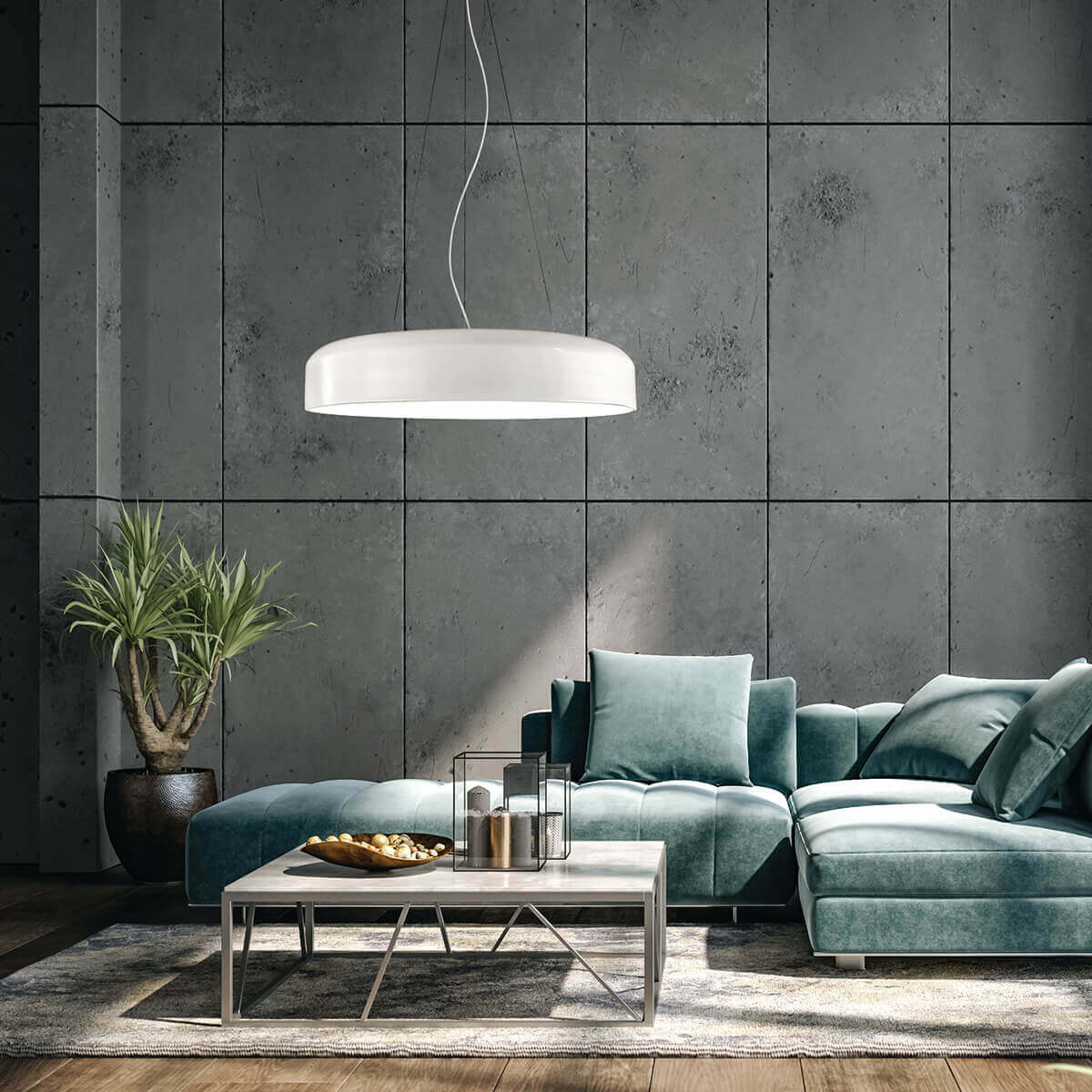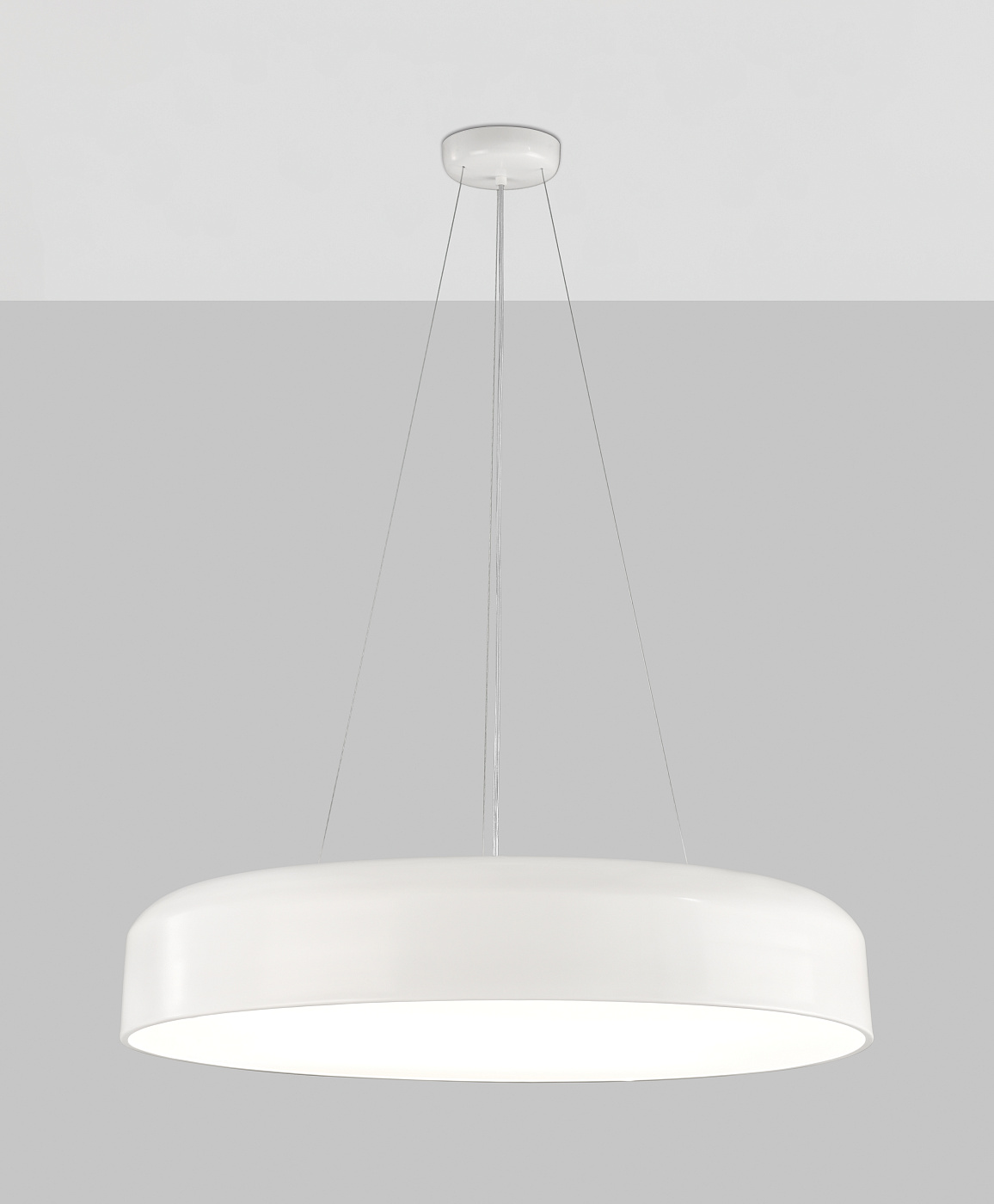 Подвесной светильник с металлическим абажуром диаметром 76 см, доступен в различных вариантах отделки, с рассеивателем из ПММА.