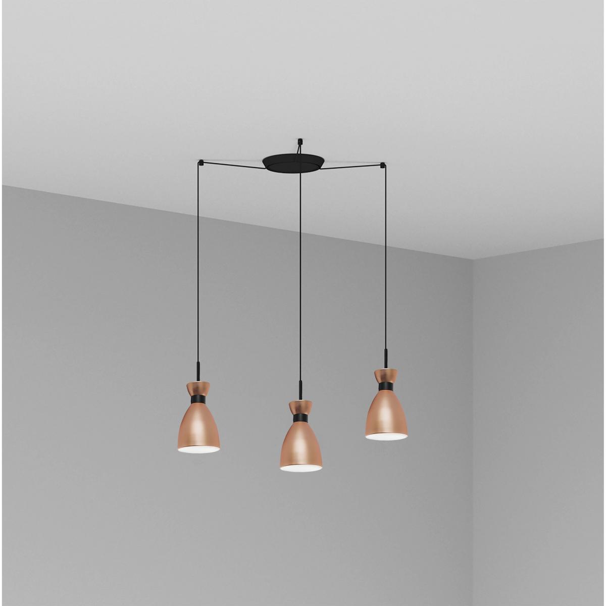 RETRO - это серия дизайнерских ламп от Alex & Manel Lluscà, вдохновленная 60-ми годами. С помощью этого подвесного светильника из меди вы можете осветить различные помещения в вашем доме. С этой серией вы получите ретро-атмосферу для домашнего освещения. Версия с несколькими потолочными розетками с 3 лампами.