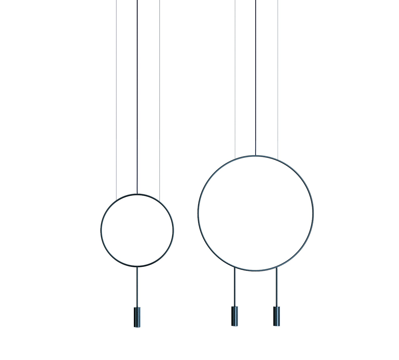 Стильный подвесной светильник с круглым корпусом, цилиндрическими алюминевыми плафонами с акриловыми оптическими линзами. Регулируемая высота. Дополнительный комплект для поворота акриловых оптических линз под углом 50º и декоративная звукопоглощающая панель.