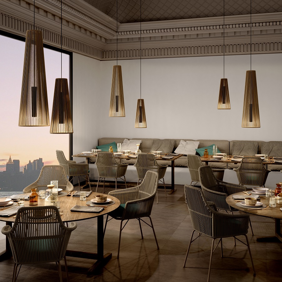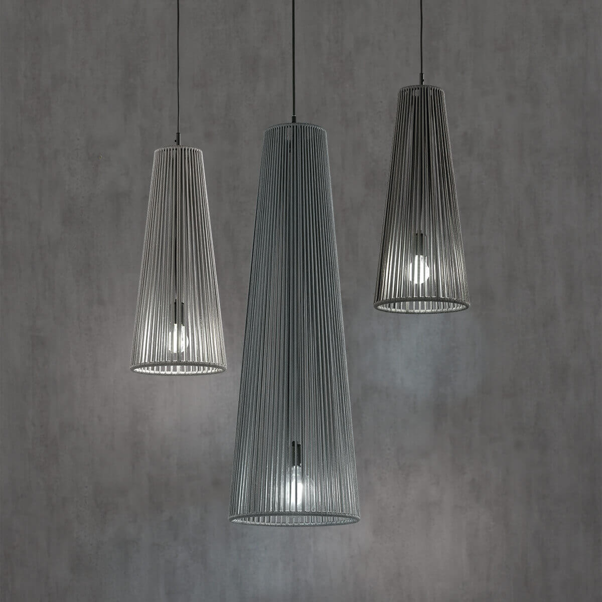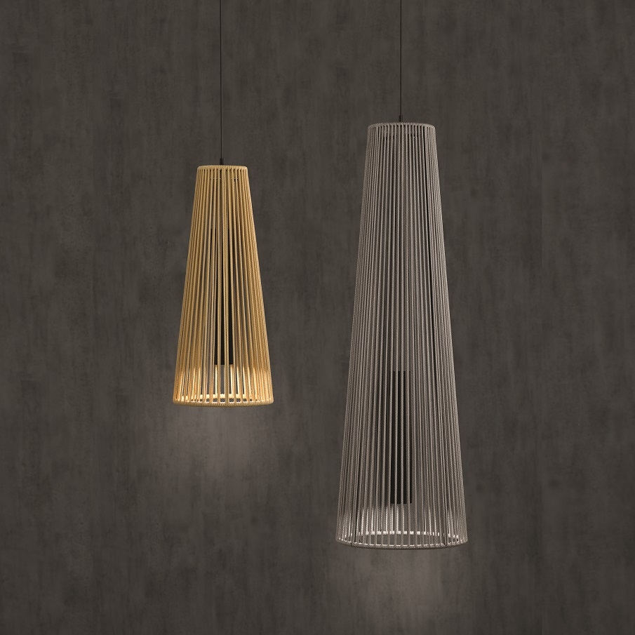 Простая конструкция плетеного шнура ручной работы на конической металлической конструкции. Внутренняя установка основана на одном из наших прожекторов PEPO, чтобы лучше отметить световой конус.