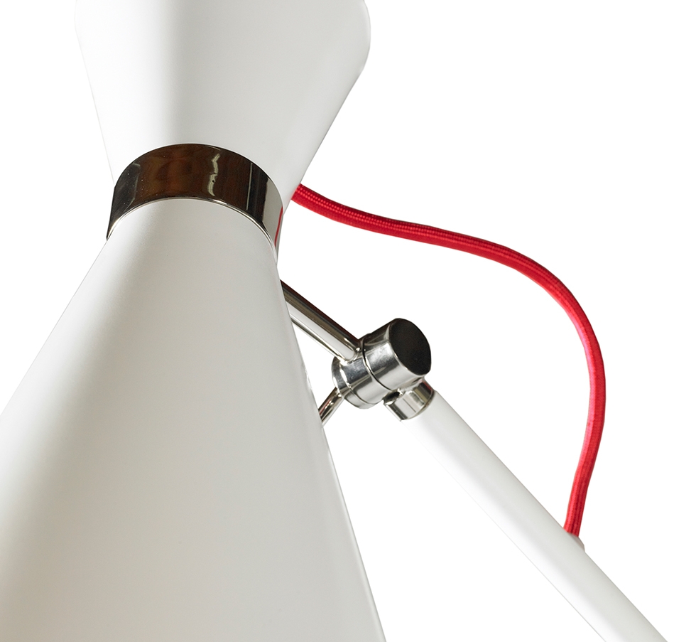 Потолочный светильинк (люстра) Simone от компании Delightfull (Португалия) выполнен в том же стиле, что и одноименный напольный светильник. Черные матовые трубки, позолоченные обода плафонов, бросающийся в глаза ярко-красный провод и ассиметричная форма люстры сделают ее центральной точкой Вашего интерьера. Каркас люстры изготовлен из меди, плафоны – из алюминия.