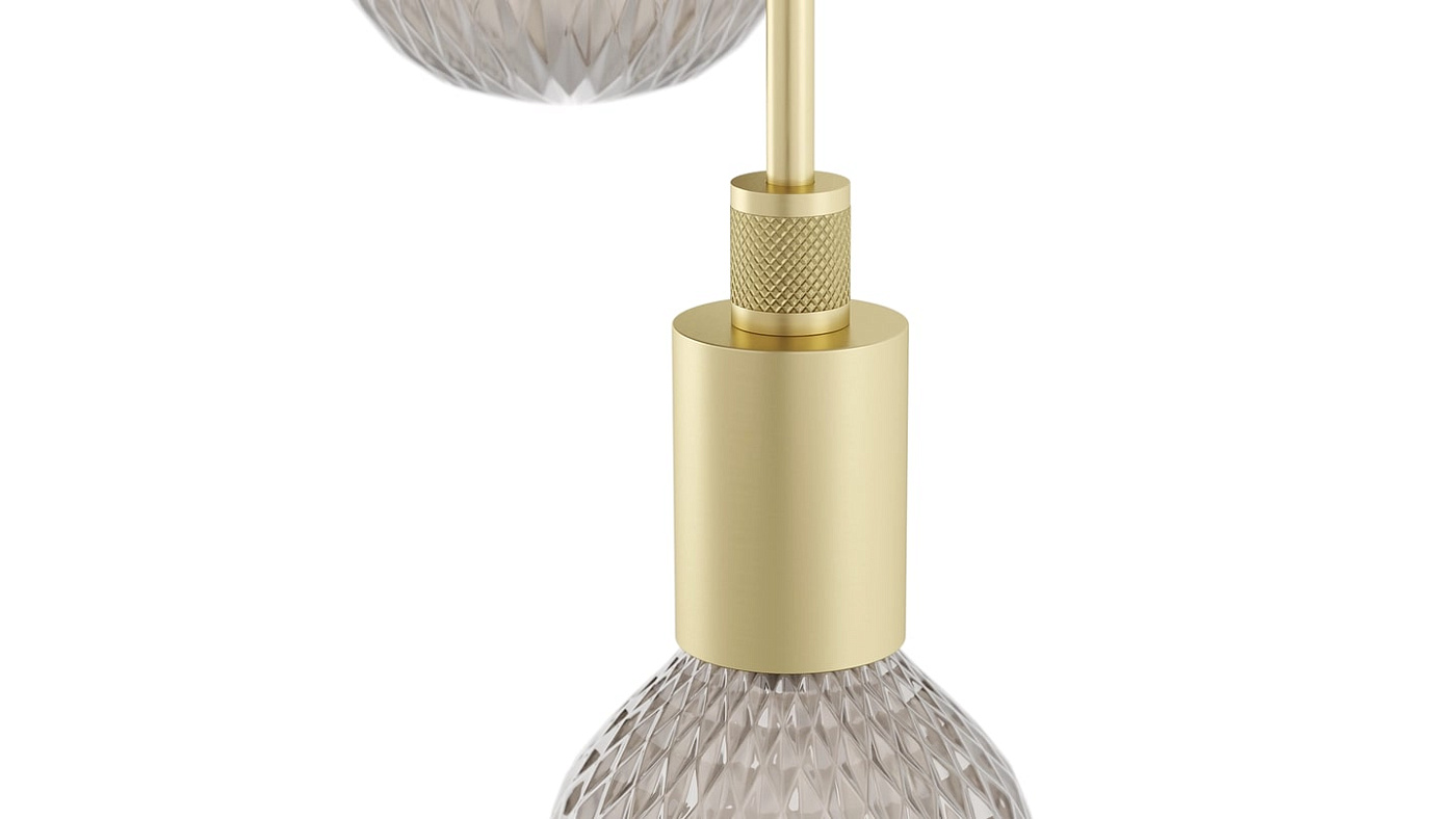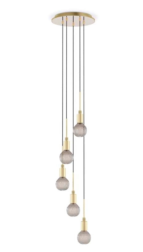 Потолочный светильник TAKI из матовой латуни украшен каскадом лампочек из граненого стекла традиционного вида, которые при освещении отбрасывают мерцающие световые узоры.