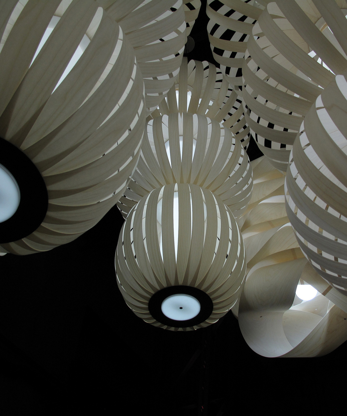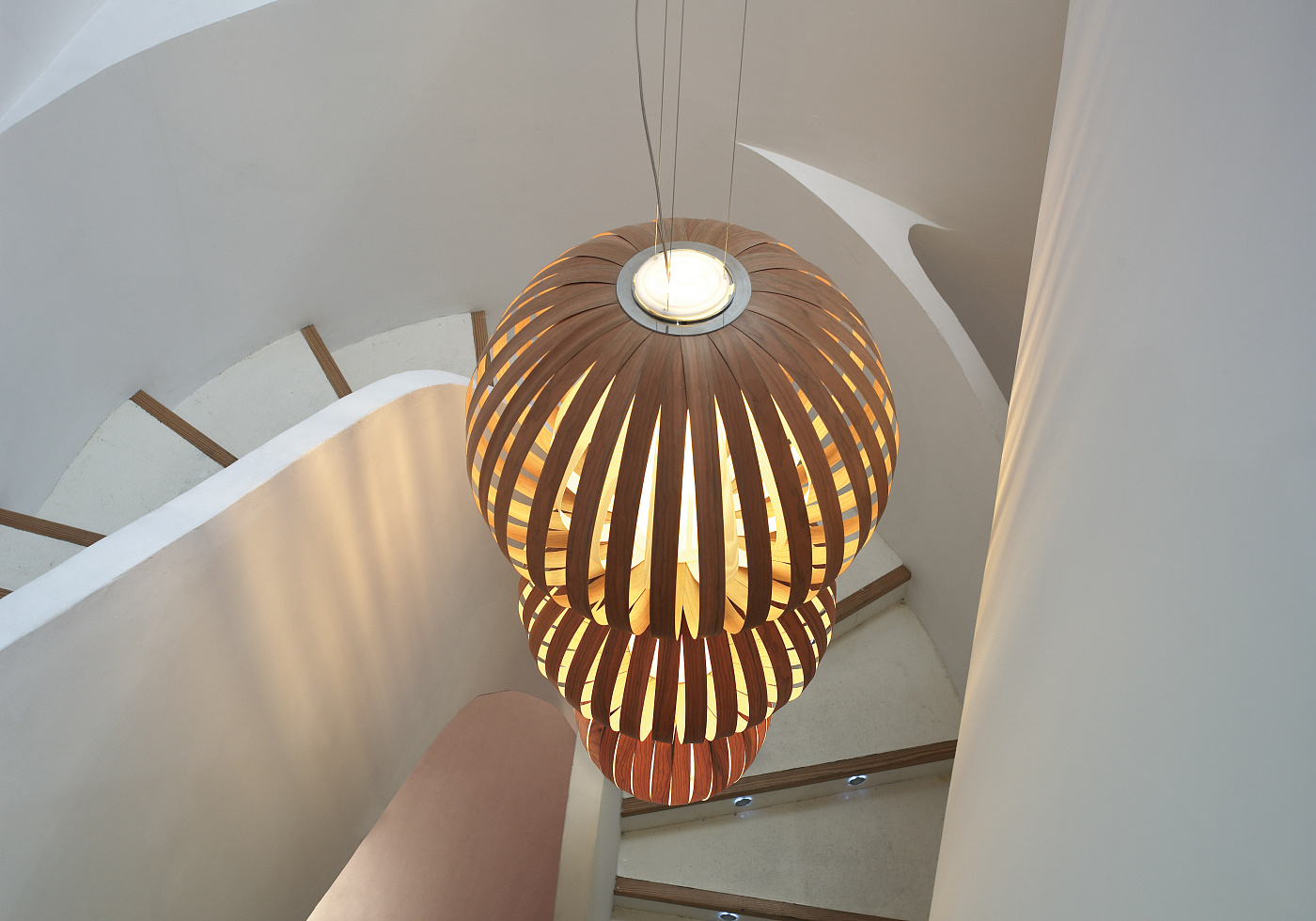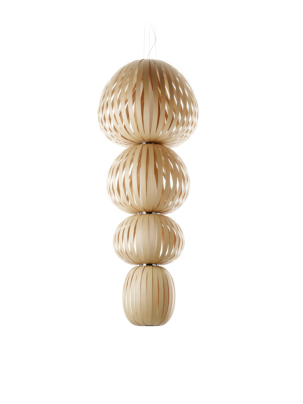 Напоминающий гирлянду светильник Totem является результатом совместной работы двух дизайнеров: немца Беркхарда Домера (Burkhard Dämmer) и испанки Мариви Кальво. Этот светильник создан специально для больших помещений и, по сути, представляет собой композицию из моделей Pod и Poppy. Плафоны светильника изготавливаются вручную из натурального шпона. Главным достоинством этой модели является полная свобода в выборе количества плафонов – помимо двух стандартных размеров, компания LZF предоставляет своим клиентам возможность увеличить или уменьшить длину этой восхитительной гирлянды. Светильник Totem доступен в 11 цветах.