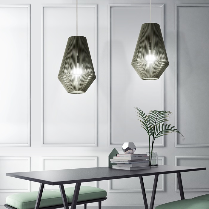 Лампа этнического дизайна, которая своими аккордами дает жизнь и хроматизм самым требовательным и инновационным пространствам. Шнуры, сплетенные вручную в металлическую структуру, просеивают свет, создавая необычные эффекты.