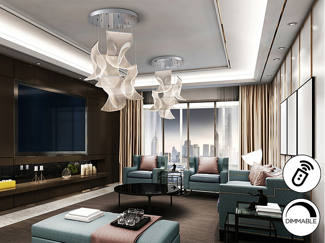 Светильник изготовлен из хромированного металла и абажуров из формованного метакрилата с микропечатью. Светодиодное освещение 25Вт 1500 лм. 3000К. Диммируемый. В комплект входит пульт дистанционного управления.R Этот продукт включает в себя светодиодные драйверы с затемнением 0–10 В, радиочастотный приемник и пульт дистанционного управления. Вы также можете затемнить этот предмет, используя настенный диммер 0–10 В. Любой другой тип диммера может повредить светодиодный драйвер.