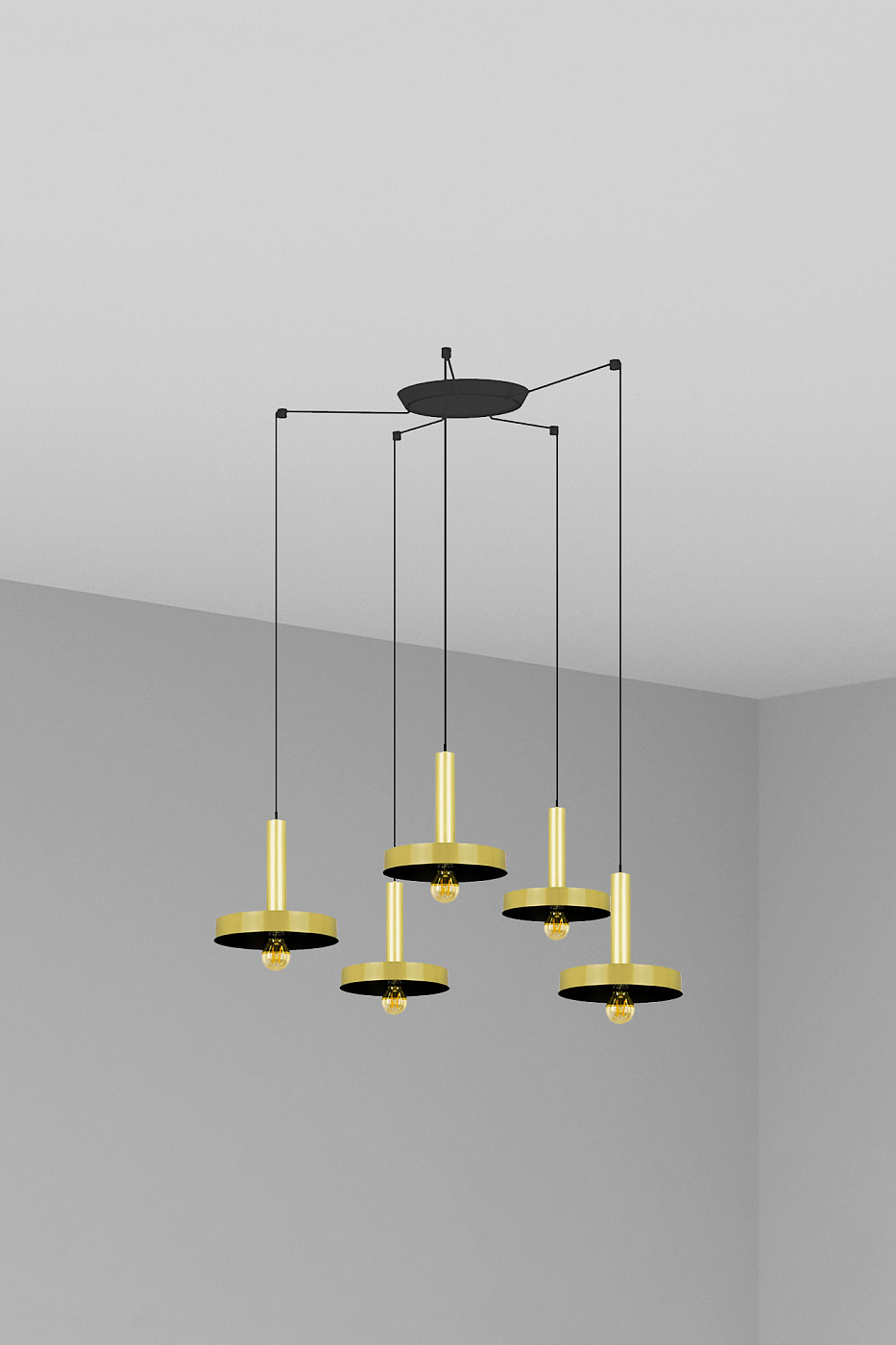 WHIZ - это семейство дизайнерских светильников, созданное Кристофом Фридрихом Вагнером, которое включает в себя модные отделки, такие как сочетание атласного золота и черного. Этот дизайнерский кулон золотисто-черного цвета идеально подходит для интерьерного освещения. Версия с многократной потолочной розеткой с 5 лампами.