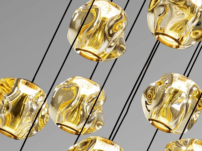 Лампа на 13 ламп, выполнена из металла с матово-черной отделкой с бронзовыми деталями и янтарными акриловыми плафонами. Светодиод 54,5 Вт, 3416 лм, 3000 К. В комплект входит драйвер TRIAC и НАБОР ДЛЯ ДИММИРОВАНИЯ. · Эта лампа оснащена ГРАВИТАЦИОННЫМИ ПЕРЕКЛЮЧАТЕЛЯМИ для улучшения фиксации на потолке.