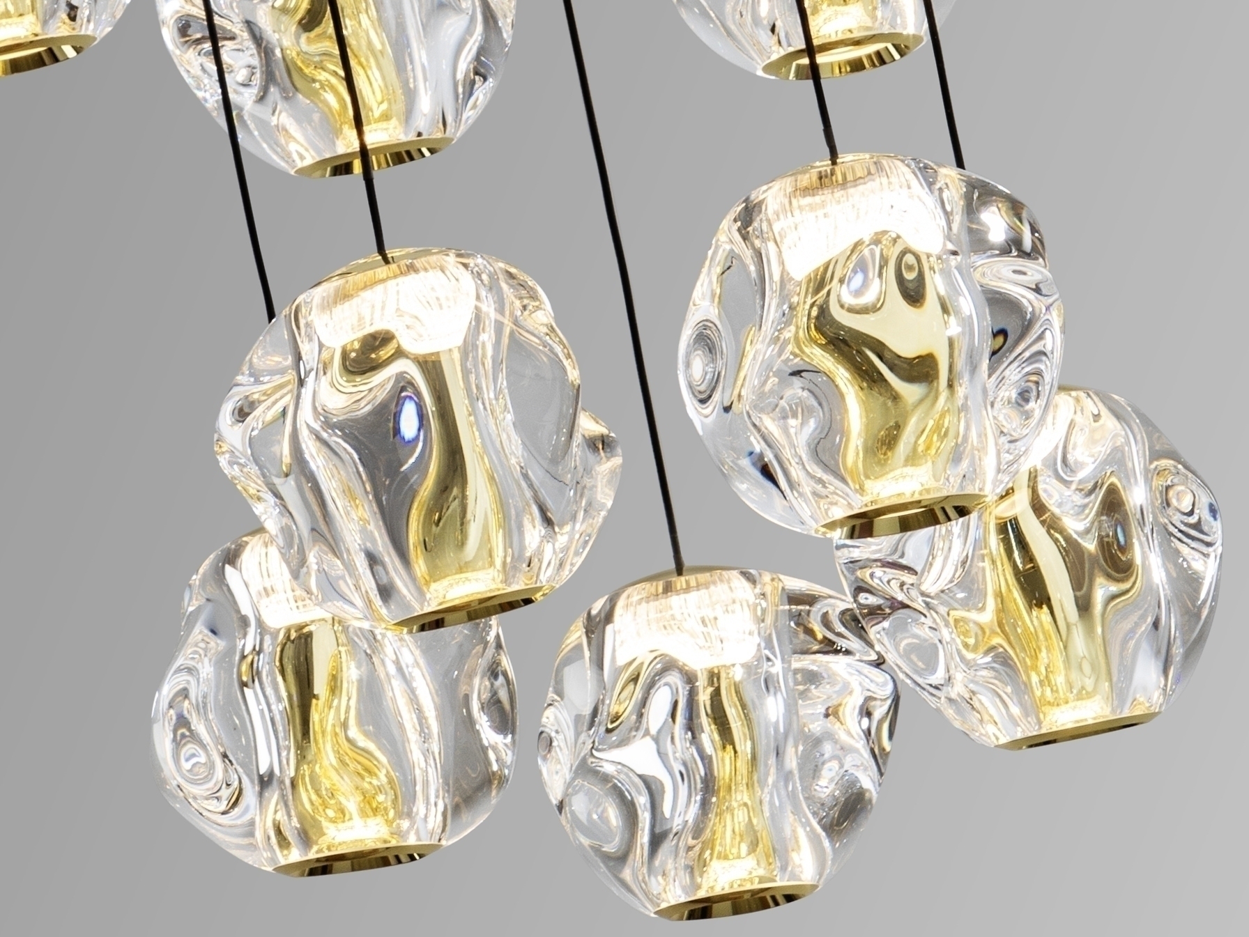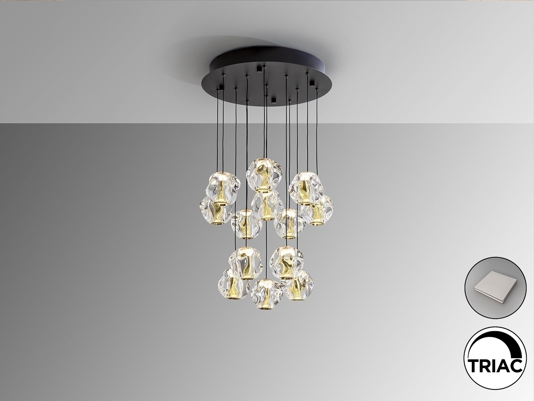 Лампа на 13 ламп, выполнена из металла с матово-черным покрытием с золотистыми деталями и прозрачными акриловыми плафонами. 54,5 светодиода, 3853 лм, 3000 К. В комплект входит драйвер TRIAC и НАБОР ДЛЯ ДИММИРОВАНИЯ. Этот продукт включает светодиодные драйверы с TRIAC и регулировкой яркости 0-10 В. Включает комплект регулировки яркости с приемником и радиочастотным пультом дистанционного управления. Его также можно использовать с настенным диммером типа TRIAC или 0-10 В. · Эта лампа поставляется с ГРАВИТАЦИОННЫМИ ПЕРЕКЛЮЧАТЕЛЯМИ для улучшения фиксации на потолке.