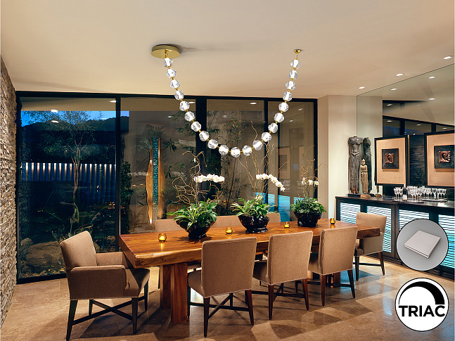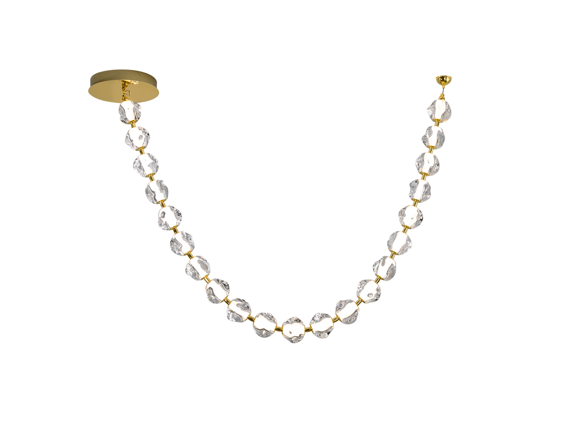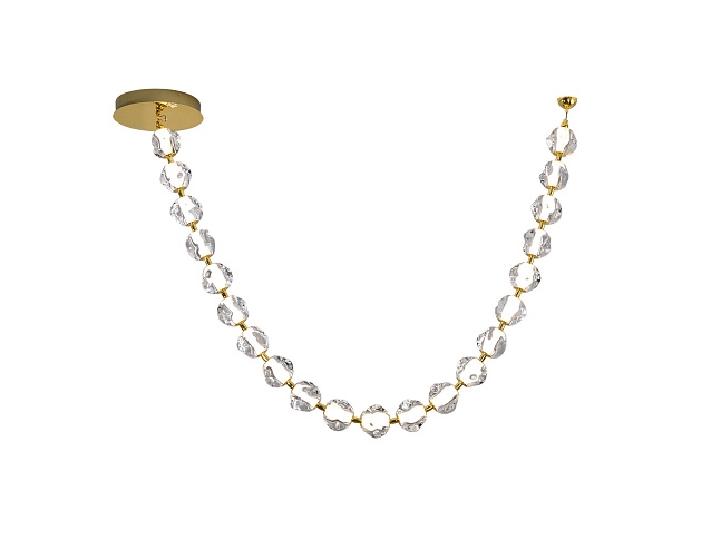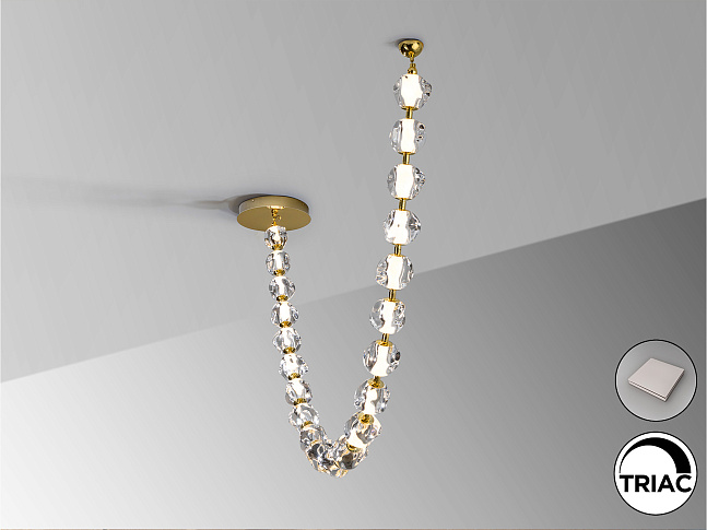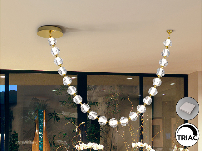 Лампа из металла золотистого цвета и 21 прозрачный акриловый абажур. Светодиод 75,50 Вт, 7129 лм, 3000 К. В комплекте драйвер TRIAC и набор DIM.