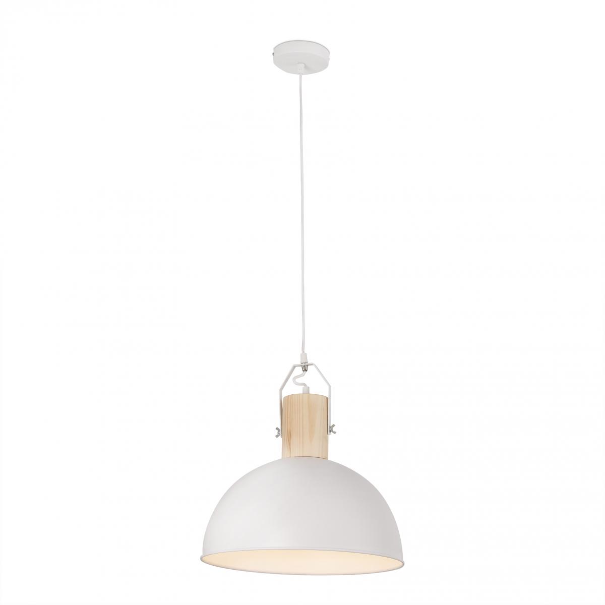 MARGOT - подвесной светильник белого цвета из металла и дерева в минималистском стиле. Деревянная деталь добавляет нотку тепла в металлический каркас.