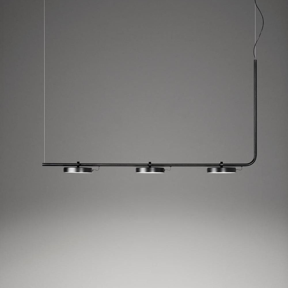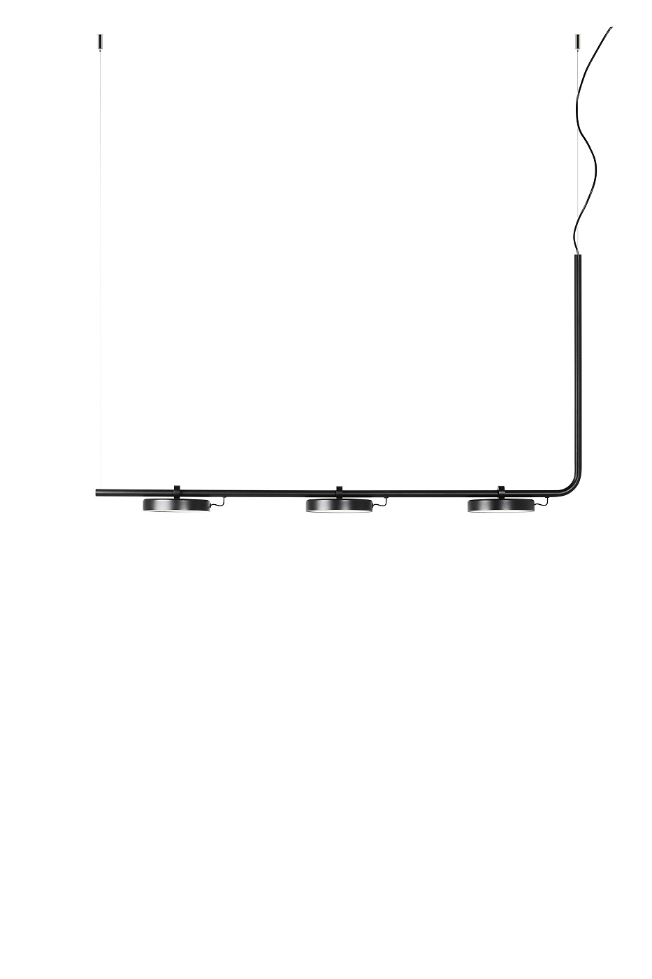 Металлическая подвесная лампа с круглыми регулируемыми головками и акриловыми рассеивателями. Головки вращаются на 106º.