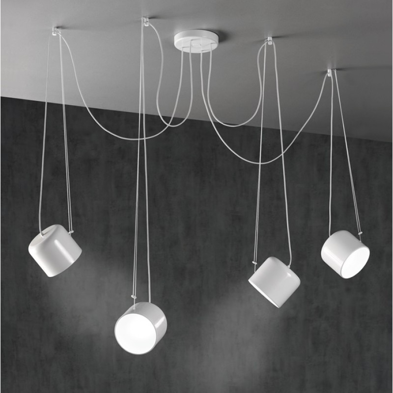 Простота и функциональность сочетаются в этой модели, состоящей из металлических вытяжек, которые можно ориентировать с помощью оригинальной системы. Доступны в вариантах с 1, 4 и 6 подвесками.