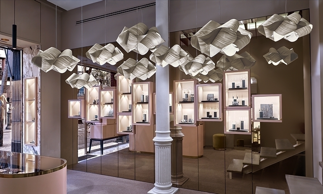 Swirl возбуждает глаз своими вихревыми крутящимися складками, их извилистое вращение - чувственный подвиг. Разработанный Ray Power, Swirl - совершенный подвес, его форма четко продумана и вылеплена. Конструкции Power, как правило, основаны на геометрии и его склонности к созданию трехмерных форм из плоских материалов ( деревянный шпон). Swirl не исключение, его четкие очертания оживают в стерео.