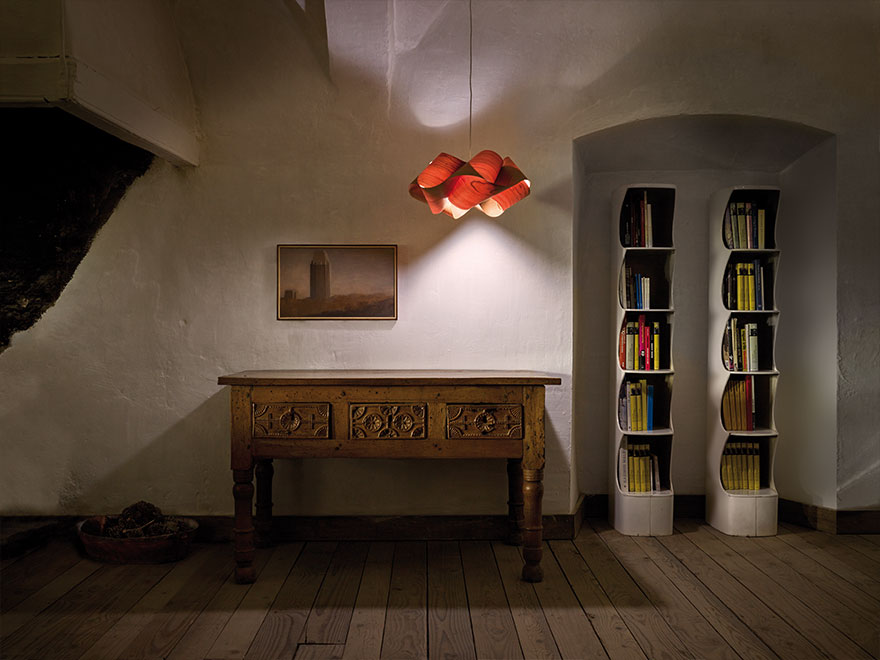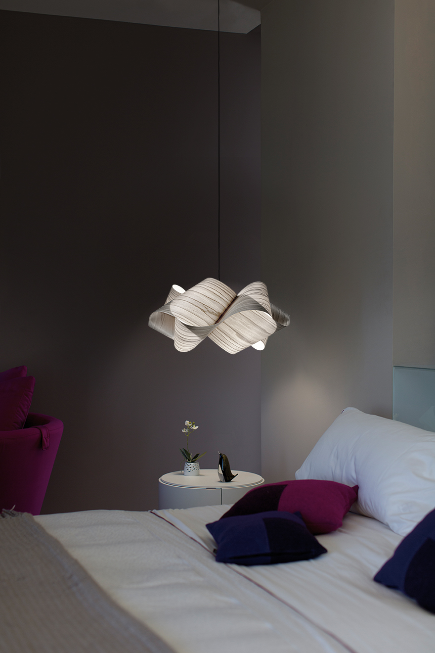 Swirl возбуждает глаз своими вихревыми крутящимися складками, их извилистое вращение - чувственный подвиг. Разработанный Ray Power, Swirl - совершенный подвес, его форма четко продумана и вылеплена. Конструкции Power, как правило, основаны на геометрии и его склонности к созданию трехмерных форм из плоских материалов ( деревянный шпон). Swirl не исключение, его четкие очертания оживают в стерео.