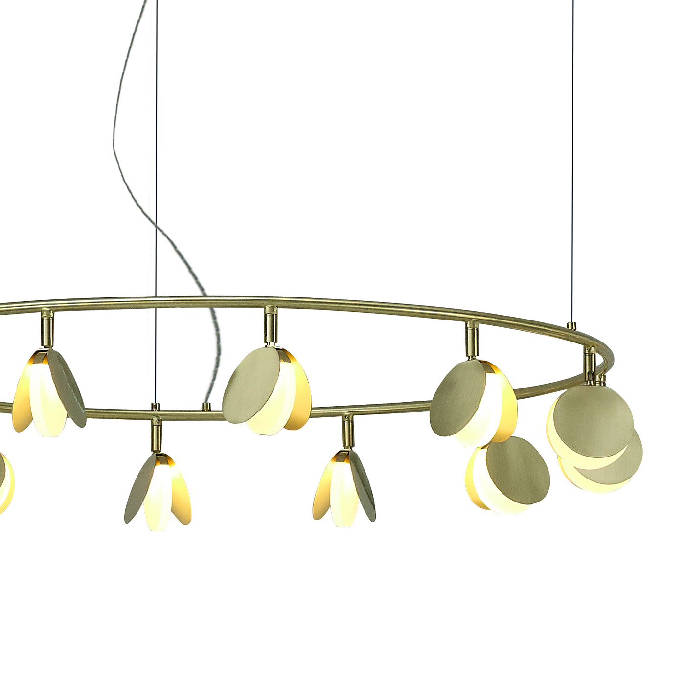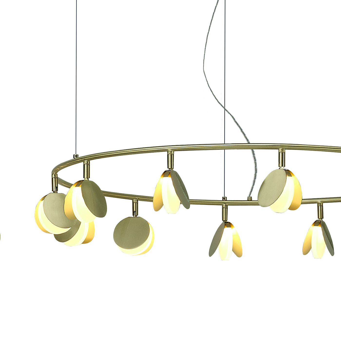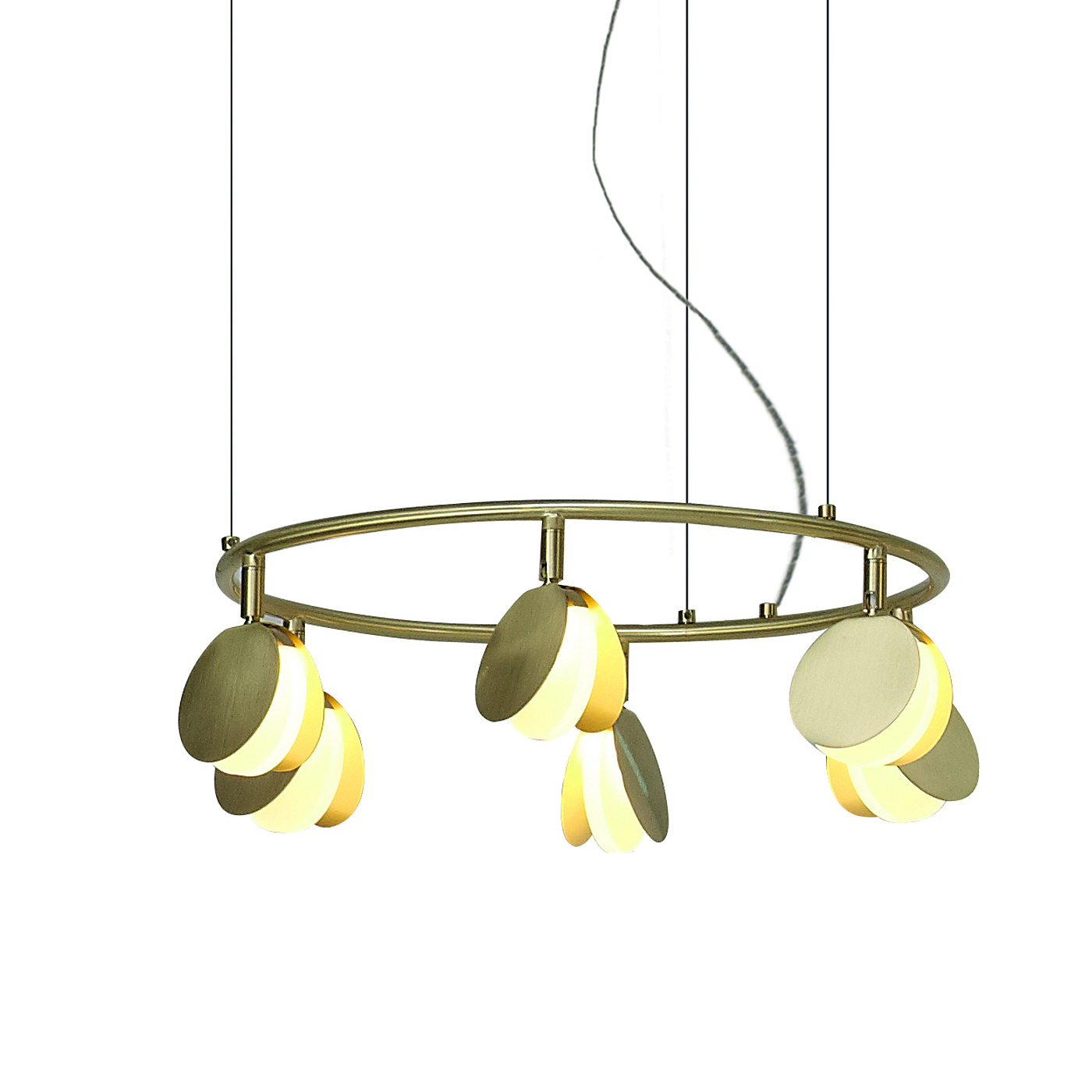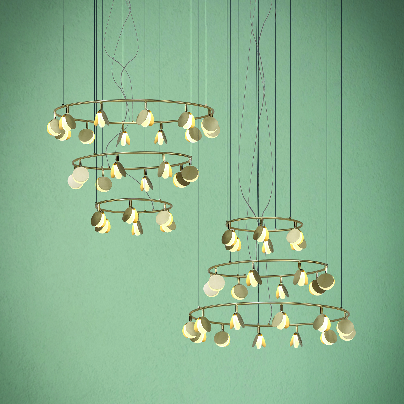 Обаятельная коллекция подвесных светильников SHELL была спроектирована российским дизайнером, Полиной Кузурман. SHELL является крайне изящной коллекцией. Она несет в себе образы вдохновения дизайнера, напоминая форму раскрывающихся ракушек или порхание стаи мотыльков. Тонкие золотые пластины распахнулись, чтобы выпустить мягкий светодиодный свет из основания формы. Множество маленьких ракушек закреплено на широком обруче. Он словно парит в воздухе, благодаря едва заметной системе подвески. Коллекция выполнена в золотой отделке и доступна в нескольких размерах. Разные системы подвесок позволяют адаптировать светильник под задачи вашего интерьера. Самая большая трехъярусная композиция коллекции представляет собой три кольца разного диаметра с разным количеством светодиодов на каждом ярусе. SHELL несомненно поддержит атмосферу комфорта и релакса в пространстве ресторана или отеля. Эта легкая и чувственная коллекция также отлично впишется в домашний интерьер гостиной или столовой.