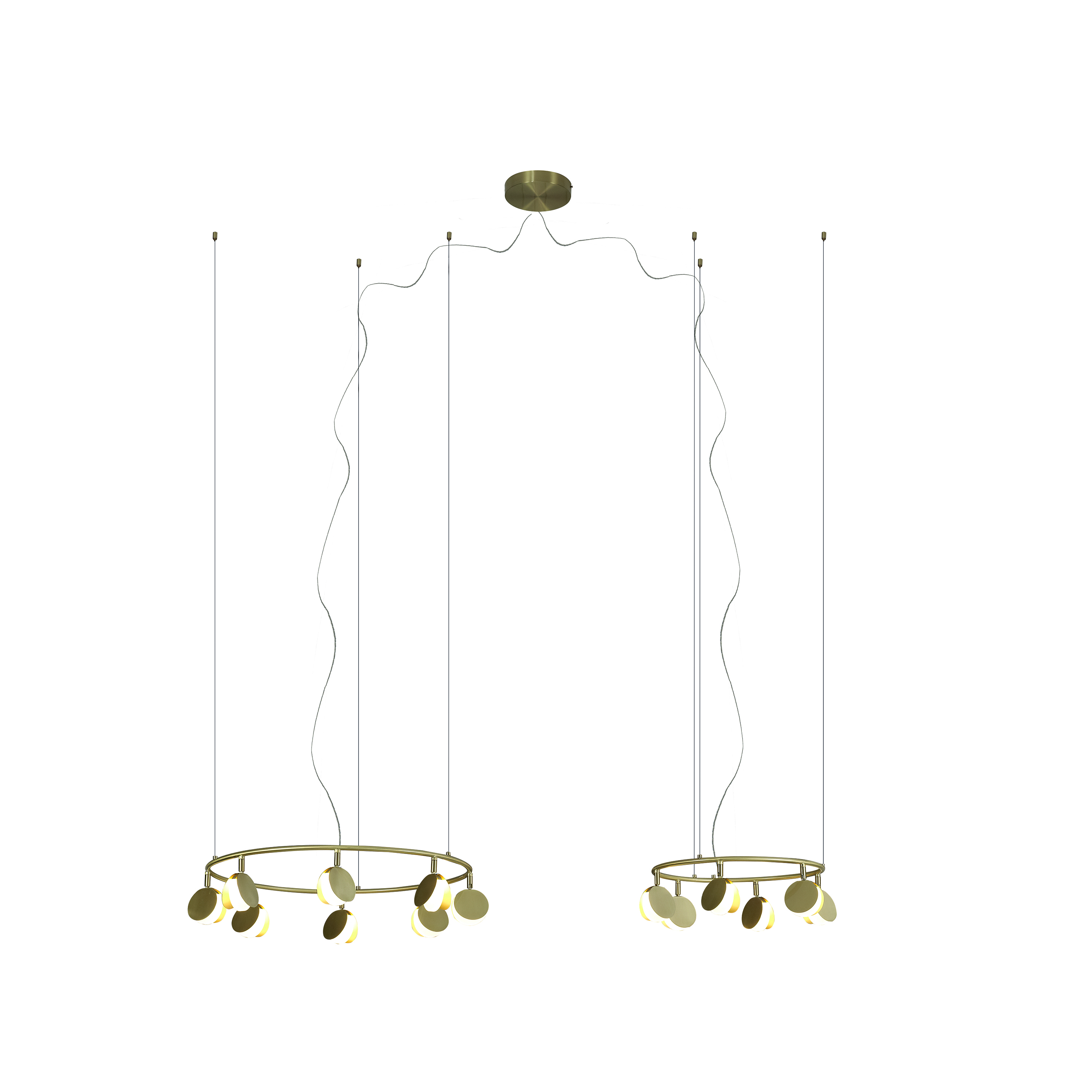 Обаятельная коллекция подвесных светильников SHELL была спроектирована российским дизайнером, Полиной Кузурман. SHELL является крайне изящной коллекцией. Она несет в себе образы вдохновения дизайнера, напоминая форму раскрывающихся ракушек или порхание стаи мотыльков. Тонкие золотые пластины распахнулись, чтобы выпустить мягкий светодиодный свет из основания формы. Множество маленьких ракушек закреплено на широком обруче. Он словно парит в воздухе, благодаря едва заметной системе подвески. Коллекция выполнена в золотой отделке и доступна в нескольких размерах. Разные системы подвесок позволяют адаптировать светильник под задачи вашего интерьера. Самая большая трехъярусная композиция коллекции представляет собой три кольца разного диаметра с разным количеством светодиодов на каждом ярусе. SHELL несомненно поддержит атмосферу комфорта и релакса в пространстве ресторана или отеля. Эта легкая и чувственная коллекция также отлично впишется в домашний интерьер гостиной или столовой.