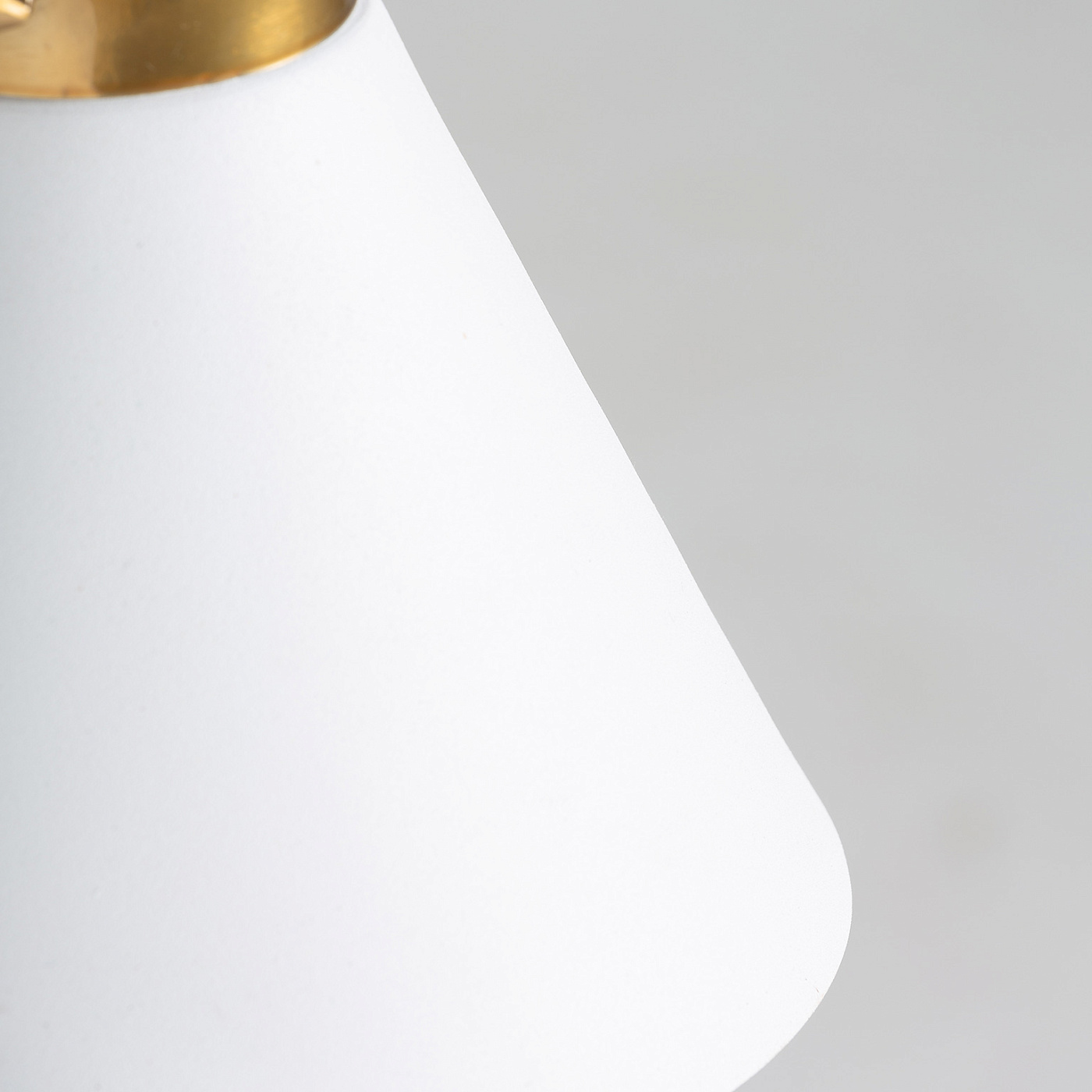 Потолочный светильник, цвет бело-золотой, стиль арт-деко. Изготовлен из железа. Расширяемый продукт. Ширина: 35 см, Глубина: 20 см, Высота: 50 см.