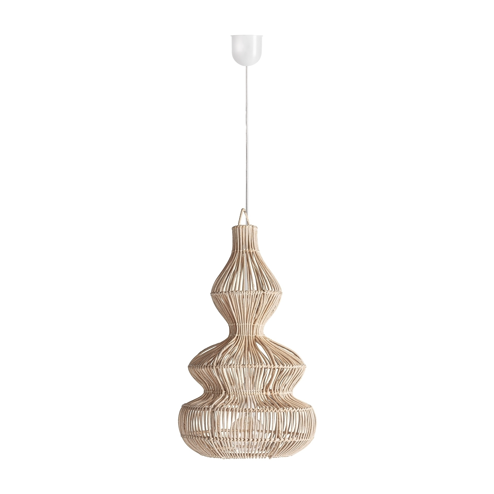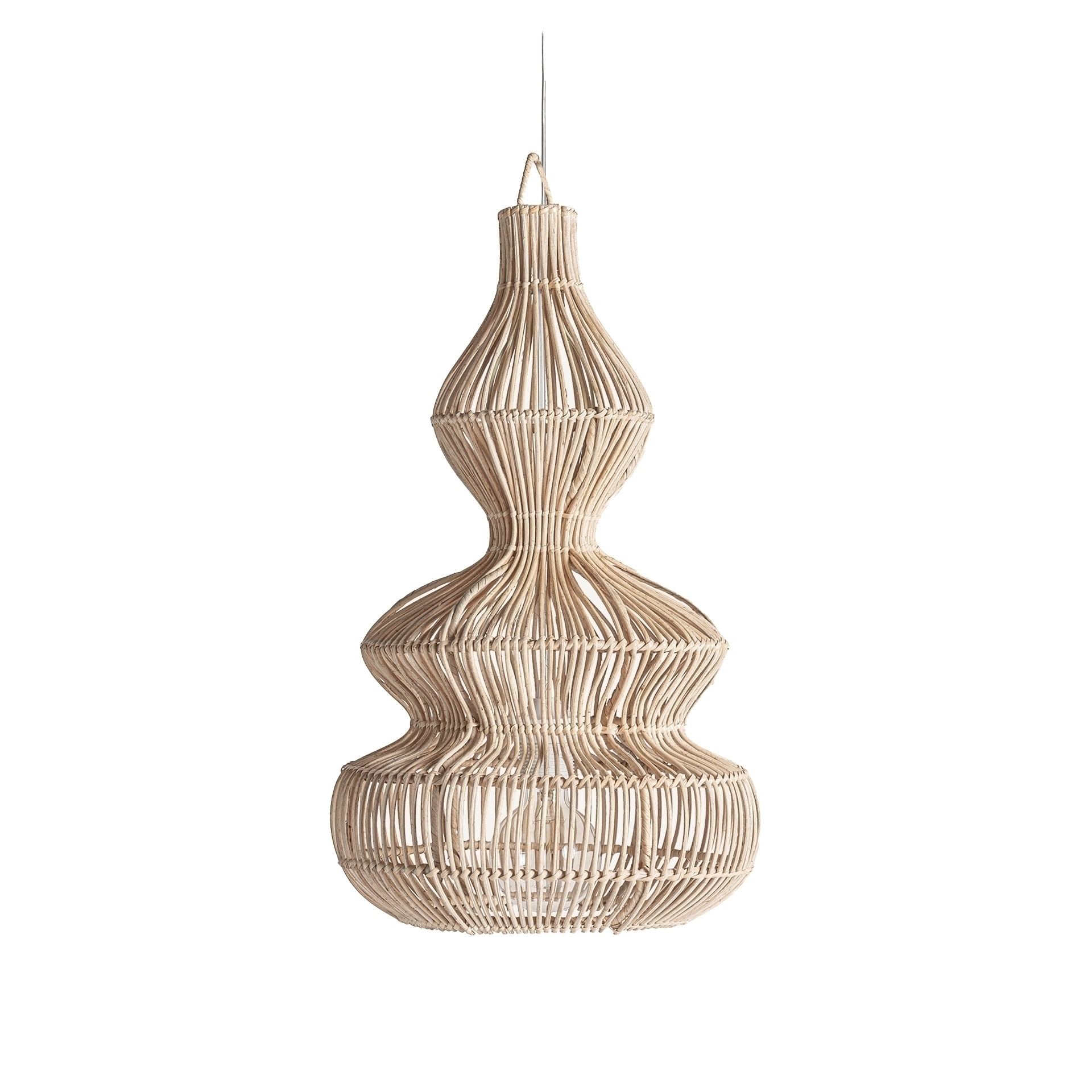 Потолочный светильник коричневого цвета в стиле бохо. Изготовлен из ротанга.