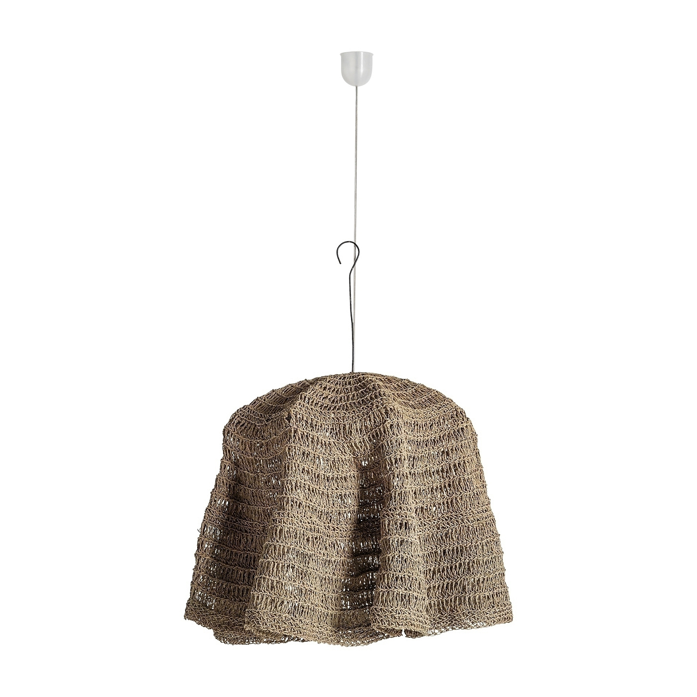 Подвесной светильник в стиле бохо, изготовлен из натурального волокна коричневого цвета.