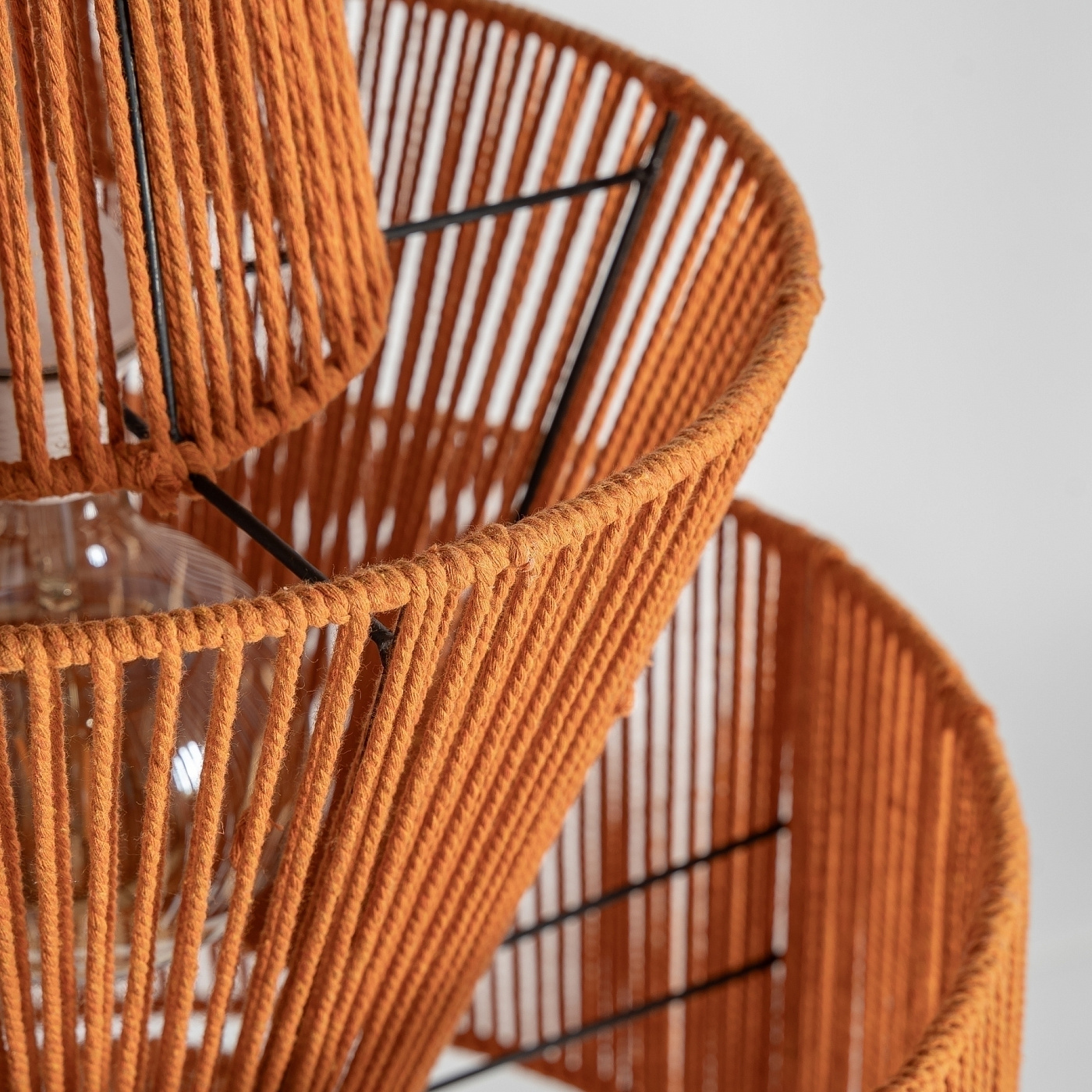 Подвесной светильник в стиле бохо кораллового цвета, изготовлен из оранжевого хлопка. Ширина: 50 см, Глубина: 50 см, Высота: 70 см
