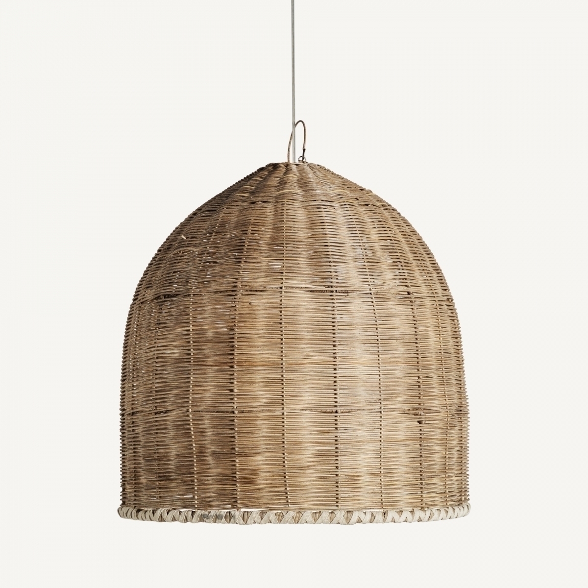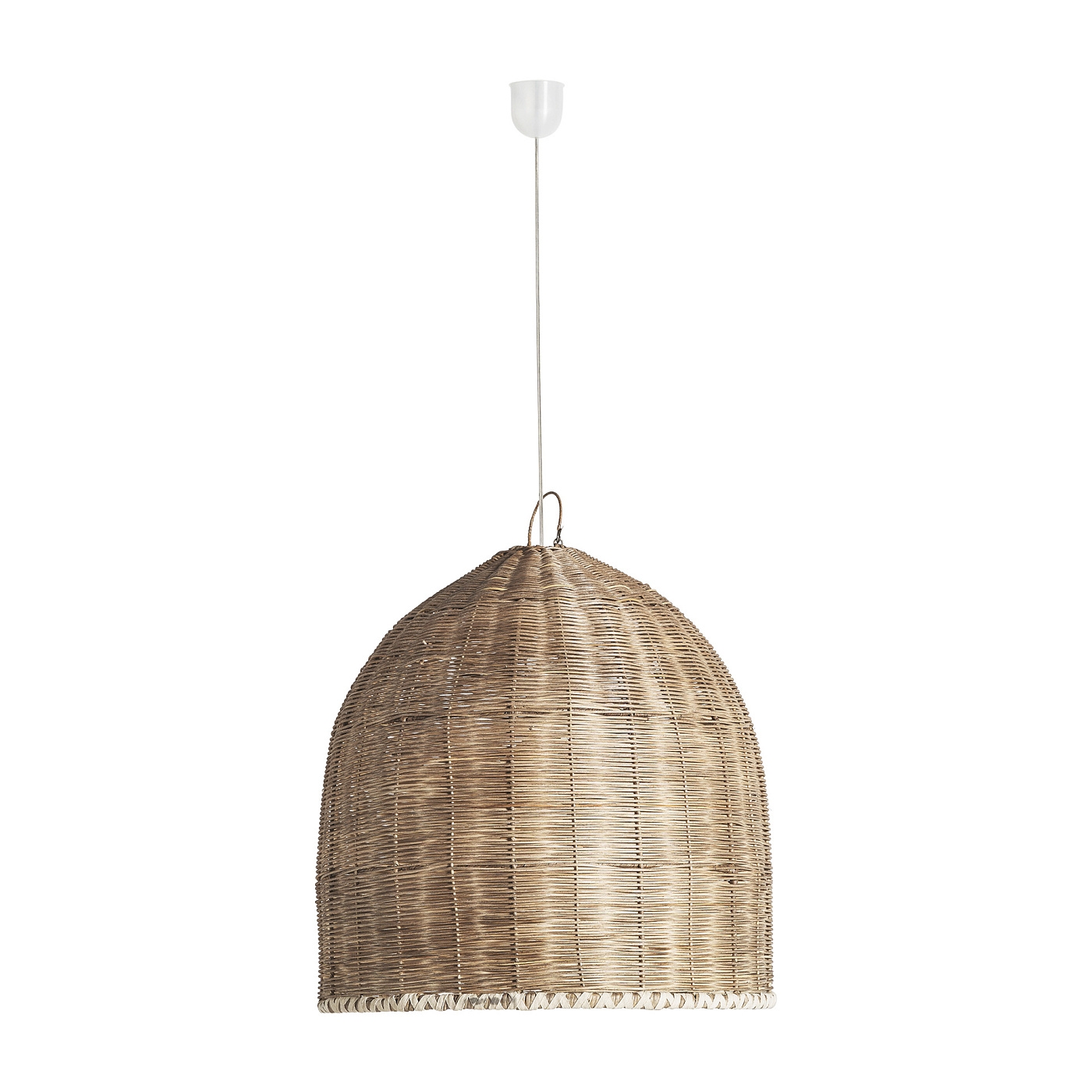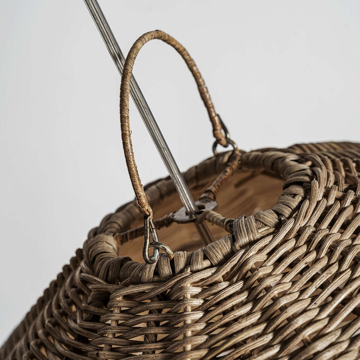 Подвесной светильник в стиле бохо, изготовлен из коричневого ротанга.