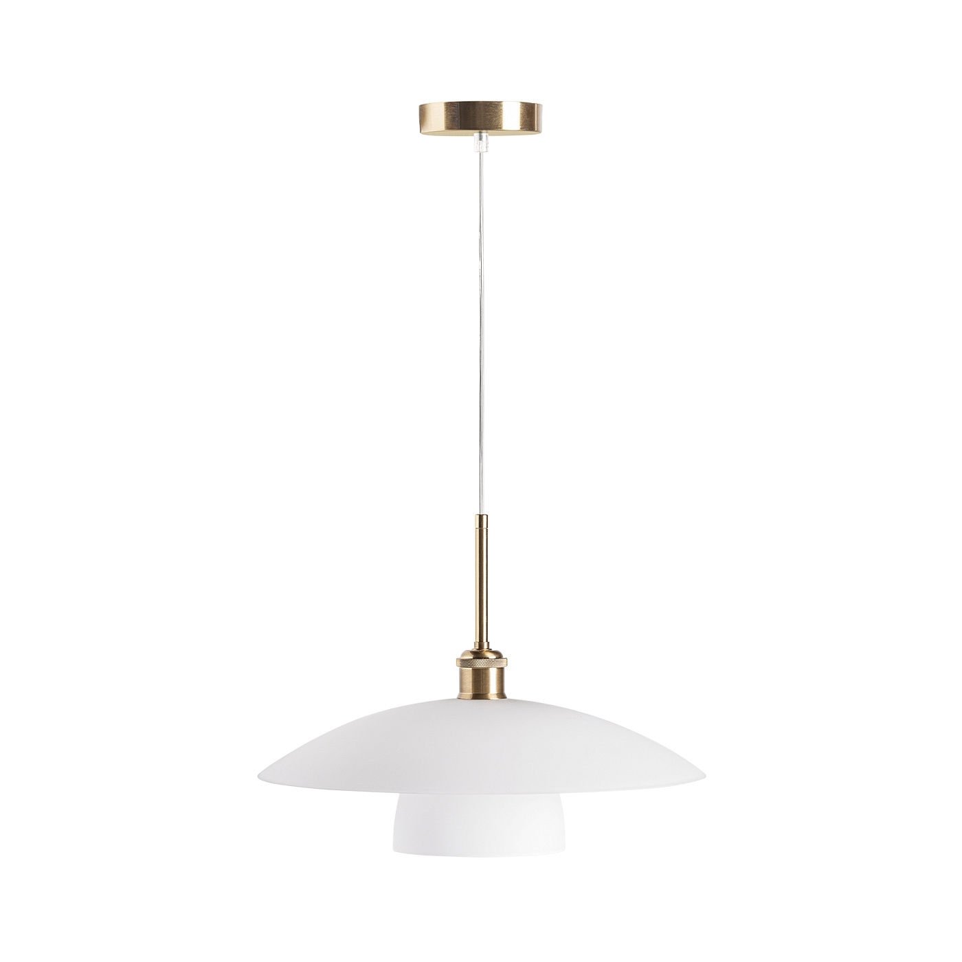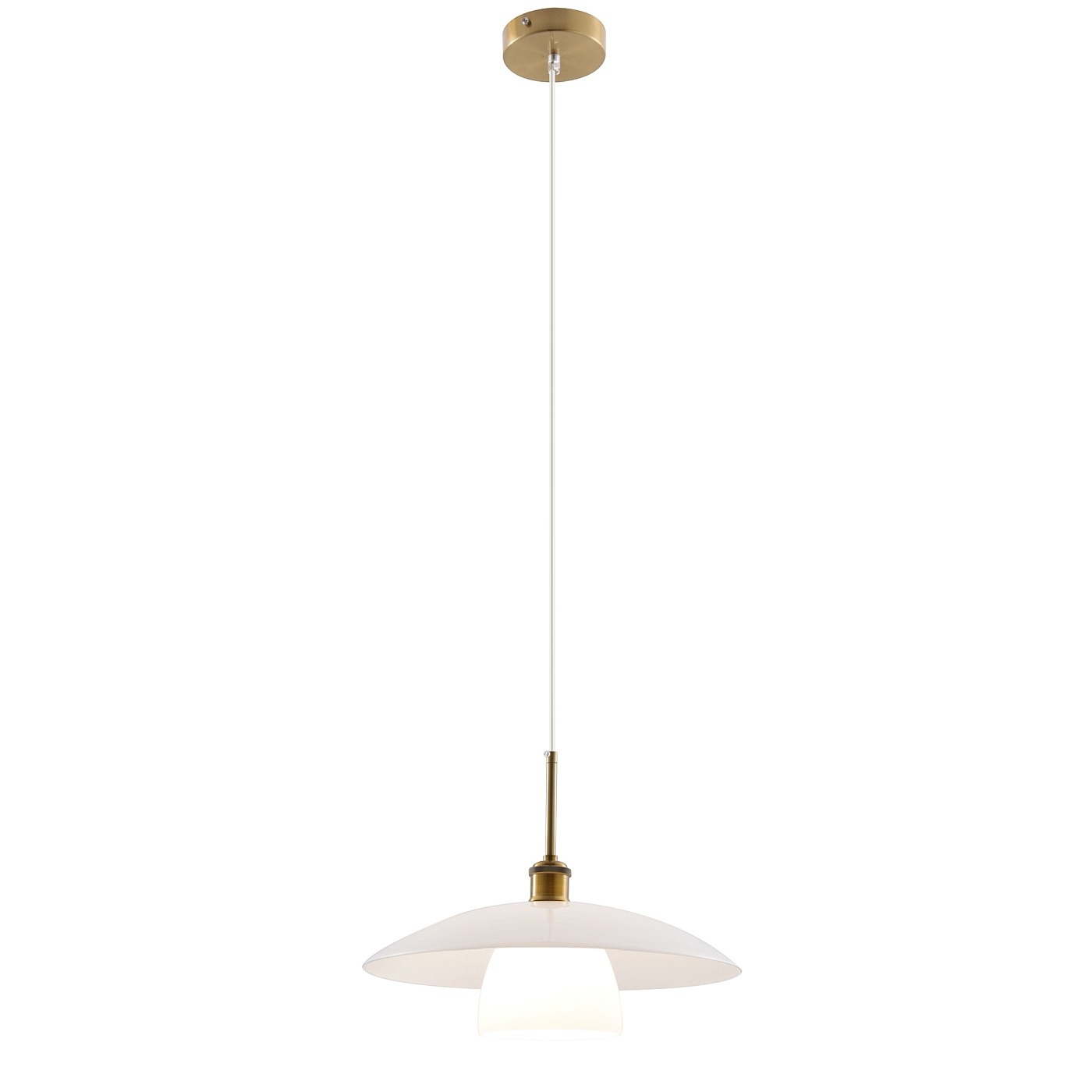 Подвесной светильник. Изготовлен из стекла белого/золотого цвета в сочетании со сталью золотого цвета. Съемное изделие.
