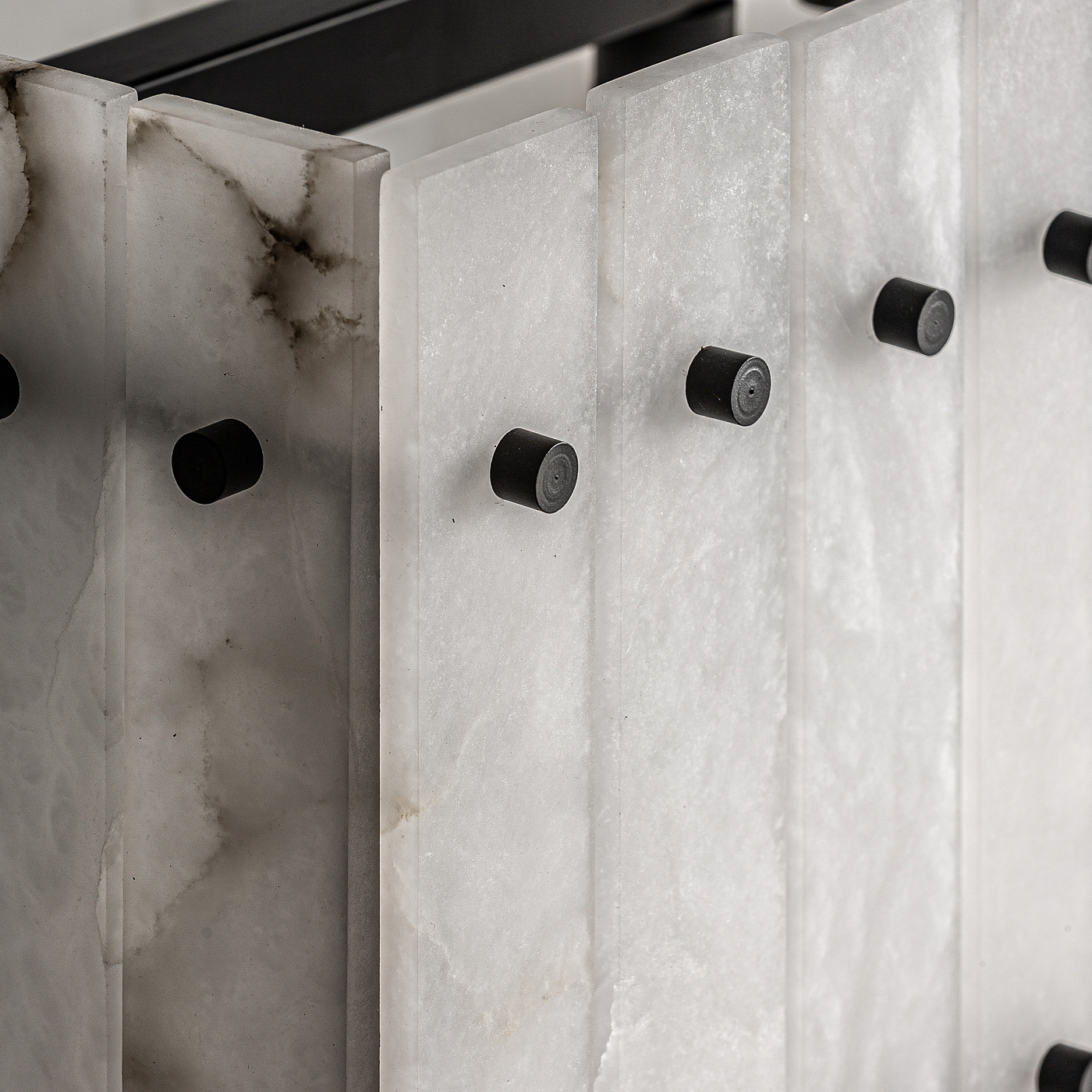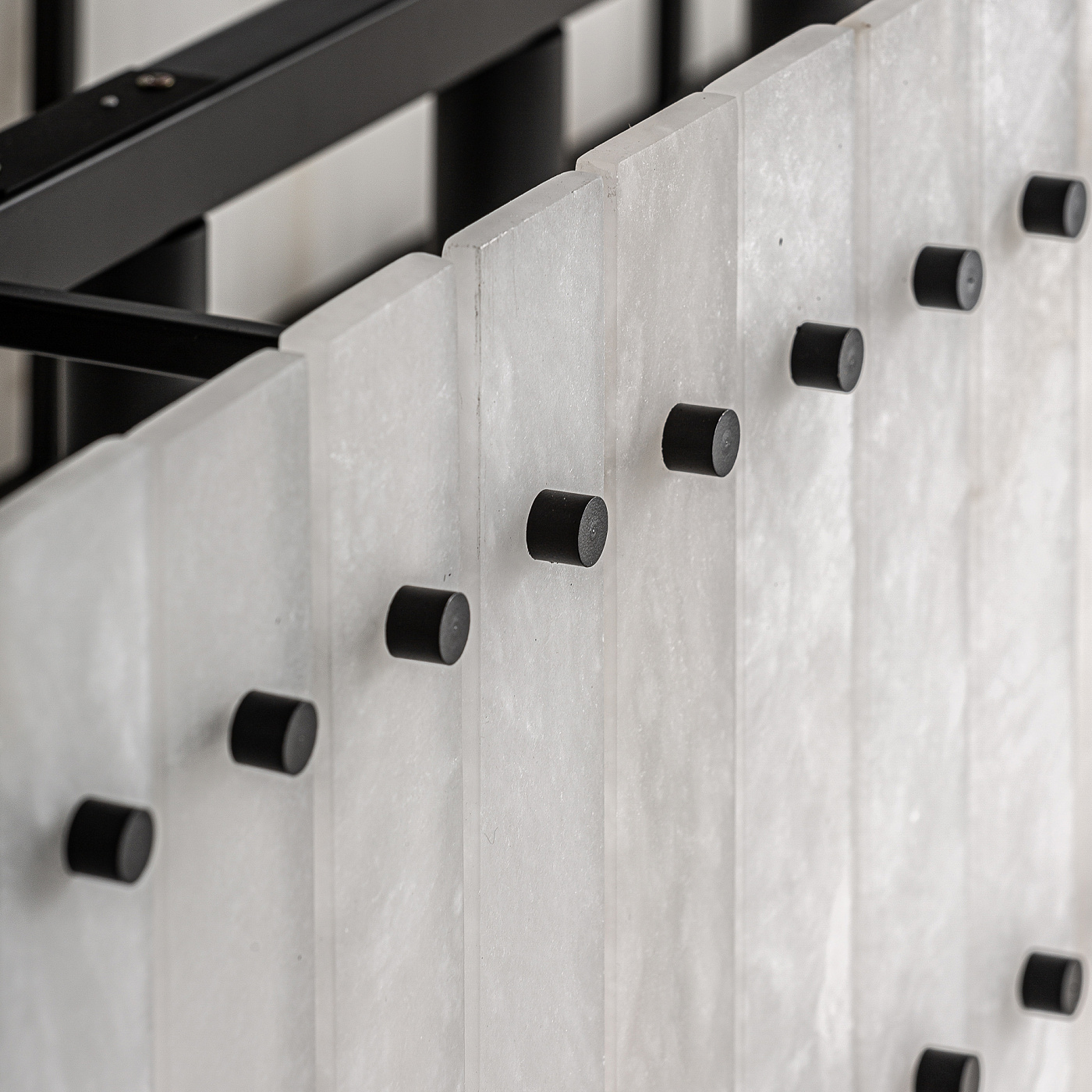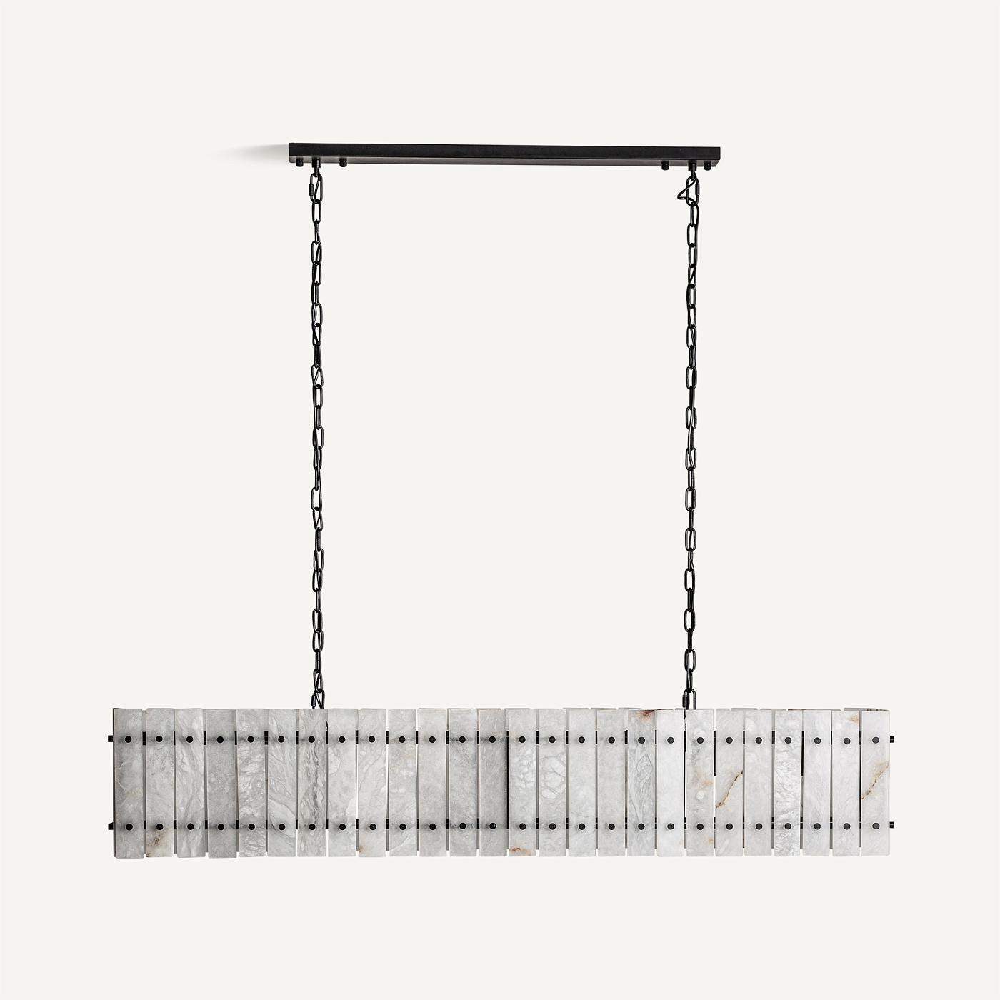 Подвесной светильник в стиле ар-деко, выполненный из белого мрамора в сочетании с черным железом. Изделие разборное.