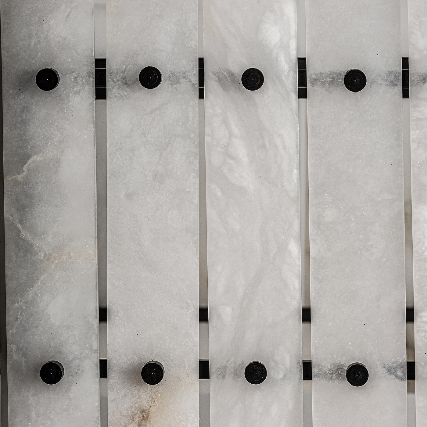 Светильник Clio сочетает в себе чистоту серого мрамора с черными металлическими акцентами, создавая элегантный и структурный светильник. Его лаконичный, линейный дизайн идеально вписывается в современные интерьеры, обеспечивая визуальную упорядоченность и равномерное освещение. Ширина: 142 см, Глубина: 38 см, Высота: 27 см