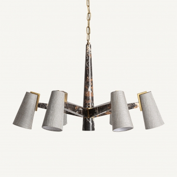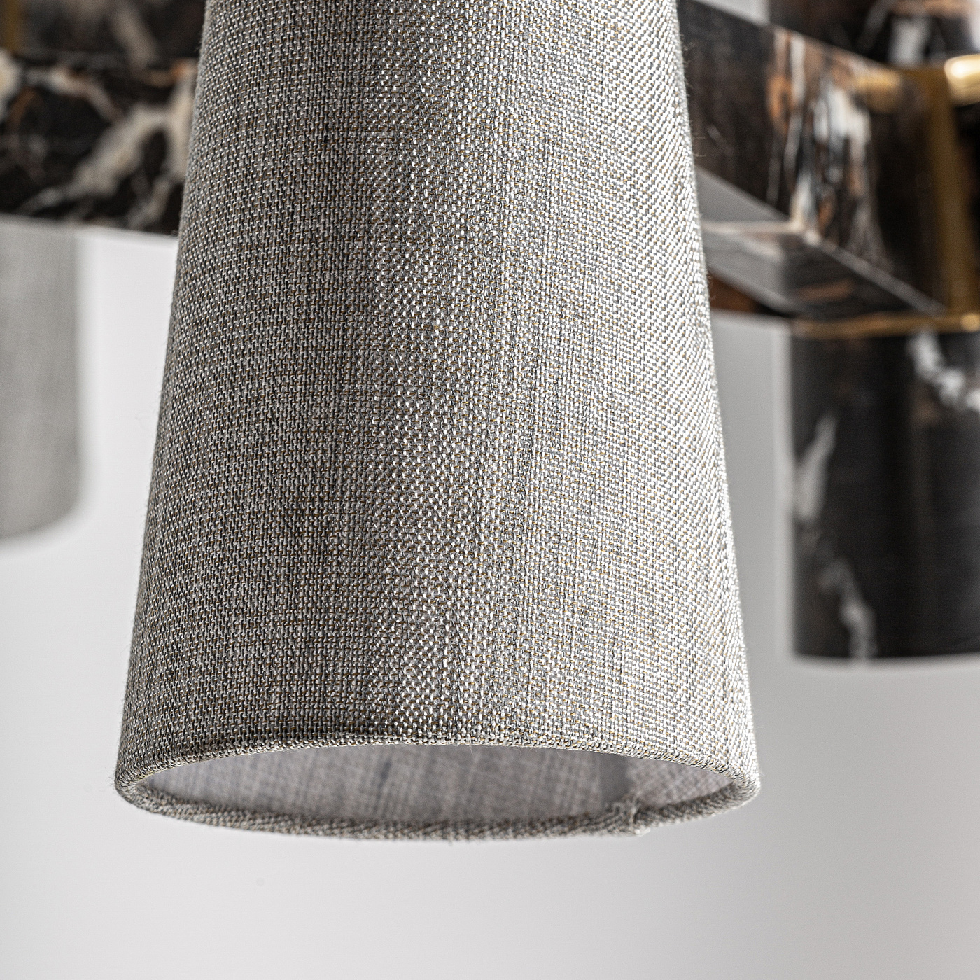 Подвесной светильник, выполненный из черного мрамора в сочетании с золотистым металлом и полиэстером кремового цвета. Ширина: 97см, Глубина: 97см, Высота: 58см
