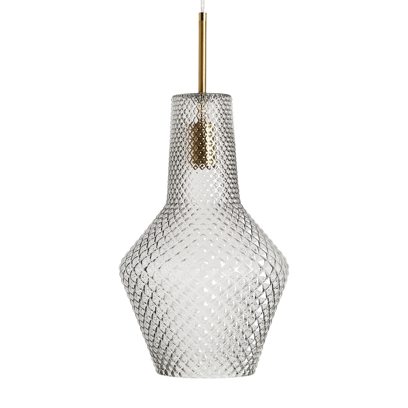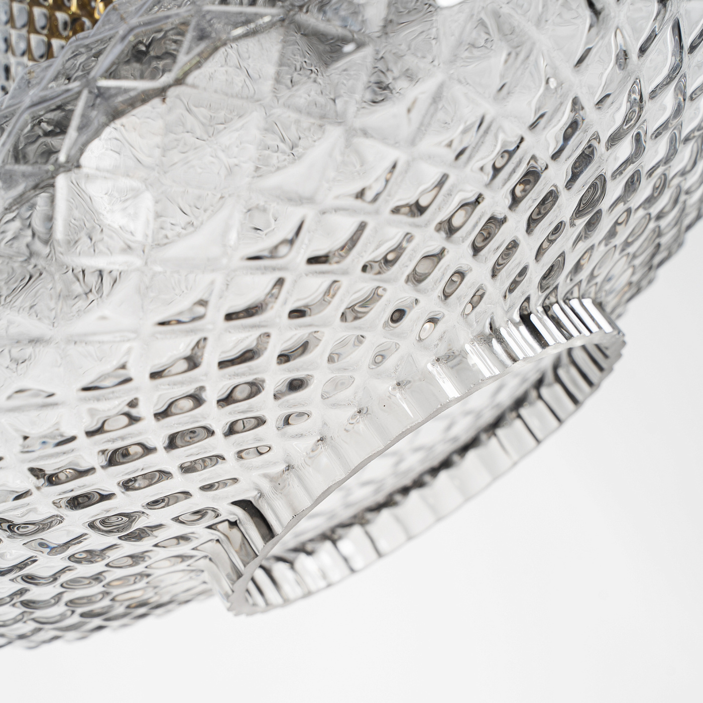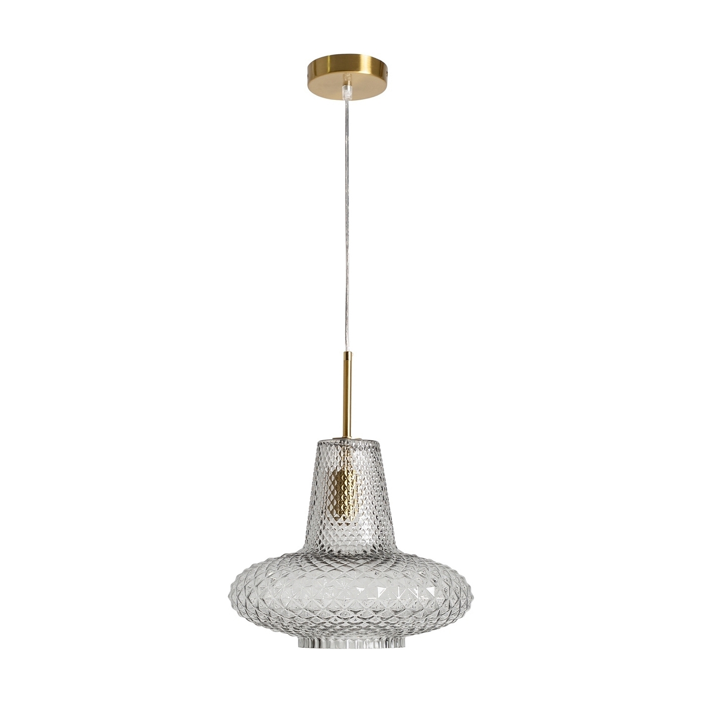 Подвесной светильник Candela в винтажном стиле, изготовленный из прозрачного стекла с ребристым покрытием в сочетании с золотистым железом. Изделие можно разобрать. Ширина: 32 см, Глубина: 32 см, Высота: 38 см