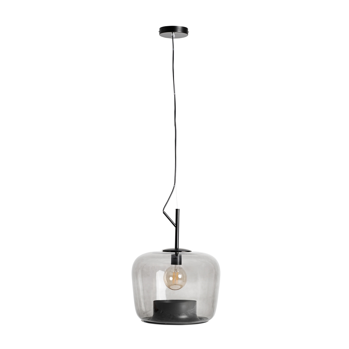 Подвесной светильник Helen в современном стиле, изготовлен из серого стекла с полупрозрачной отделкой в сочетании с черным железом. Ширина: 35 см, Глубина: 35 см, Высота: 45 см