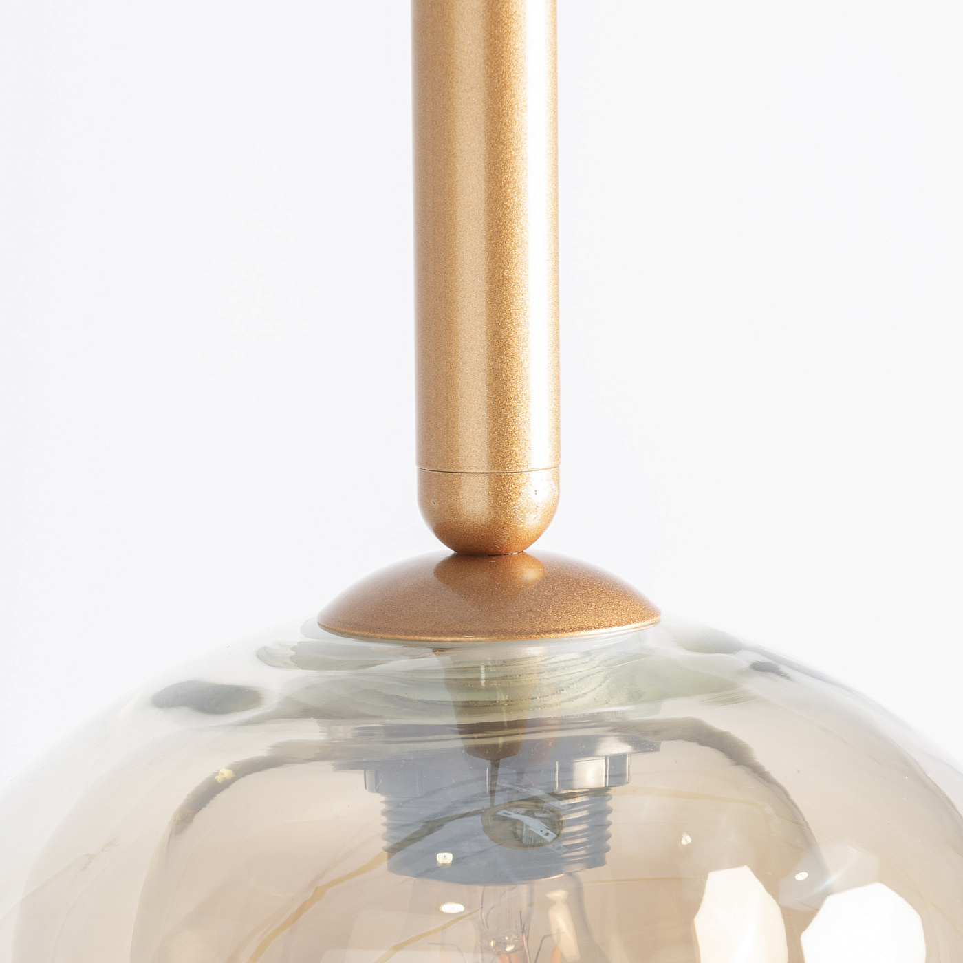 Подвесной светильник из серого стекла с дымчатой отделкой в сочетании со сталью золотистого цвета. Ширина: 25 см, Глубина: 25 см, Высота: 44 см