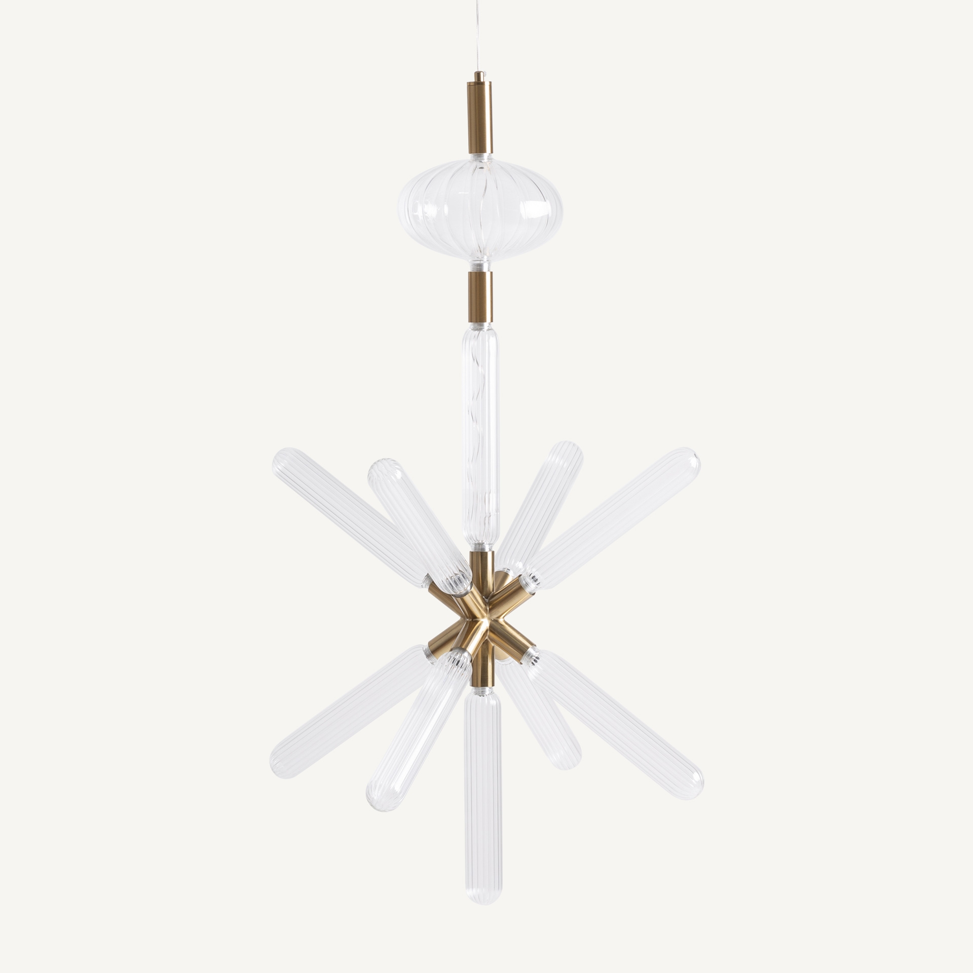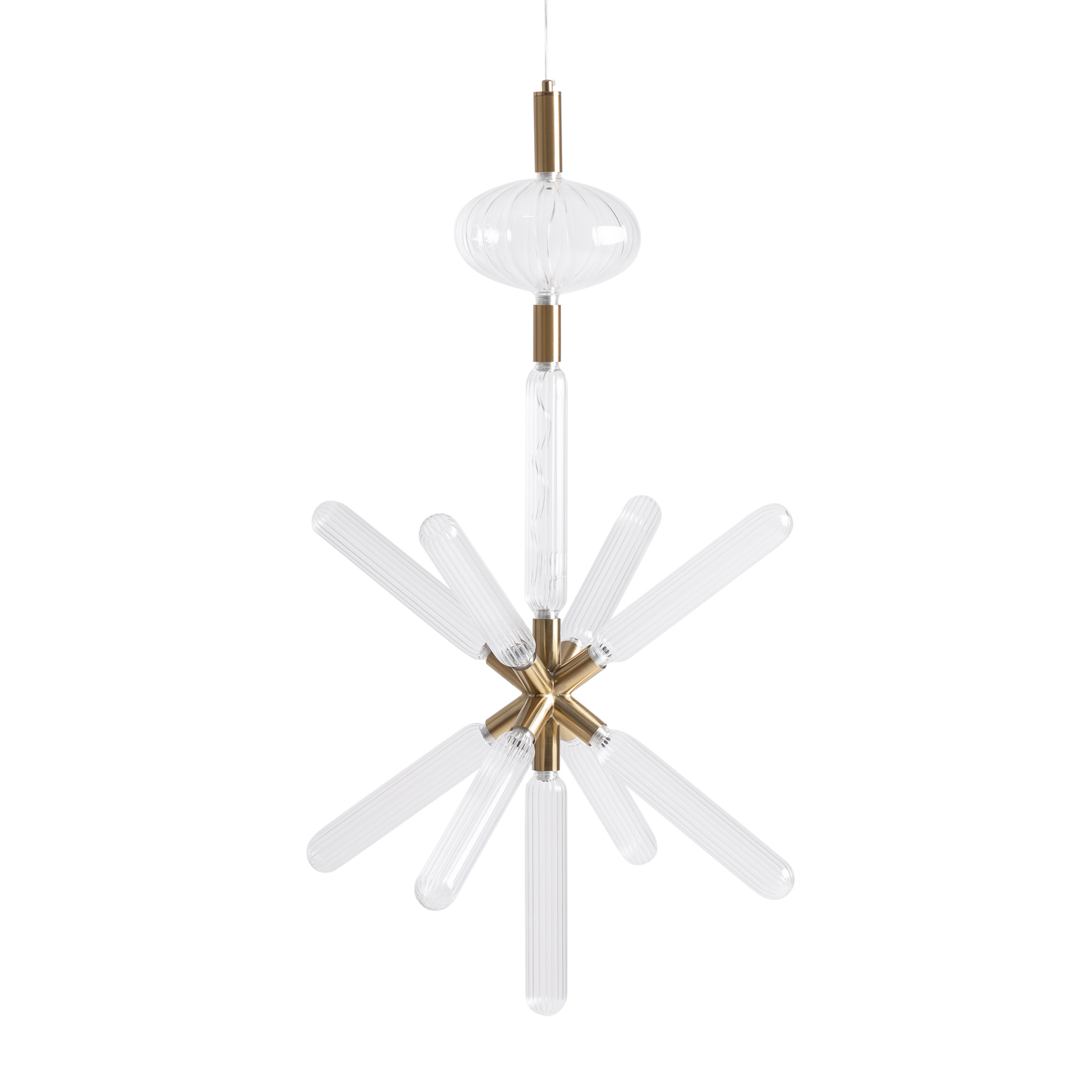 Подвесной светильник из прозрачного стекла в сочетании со сталью бронзового цвета. Ширина: 42 см, Глубина: 42 см, Высота: 100 см