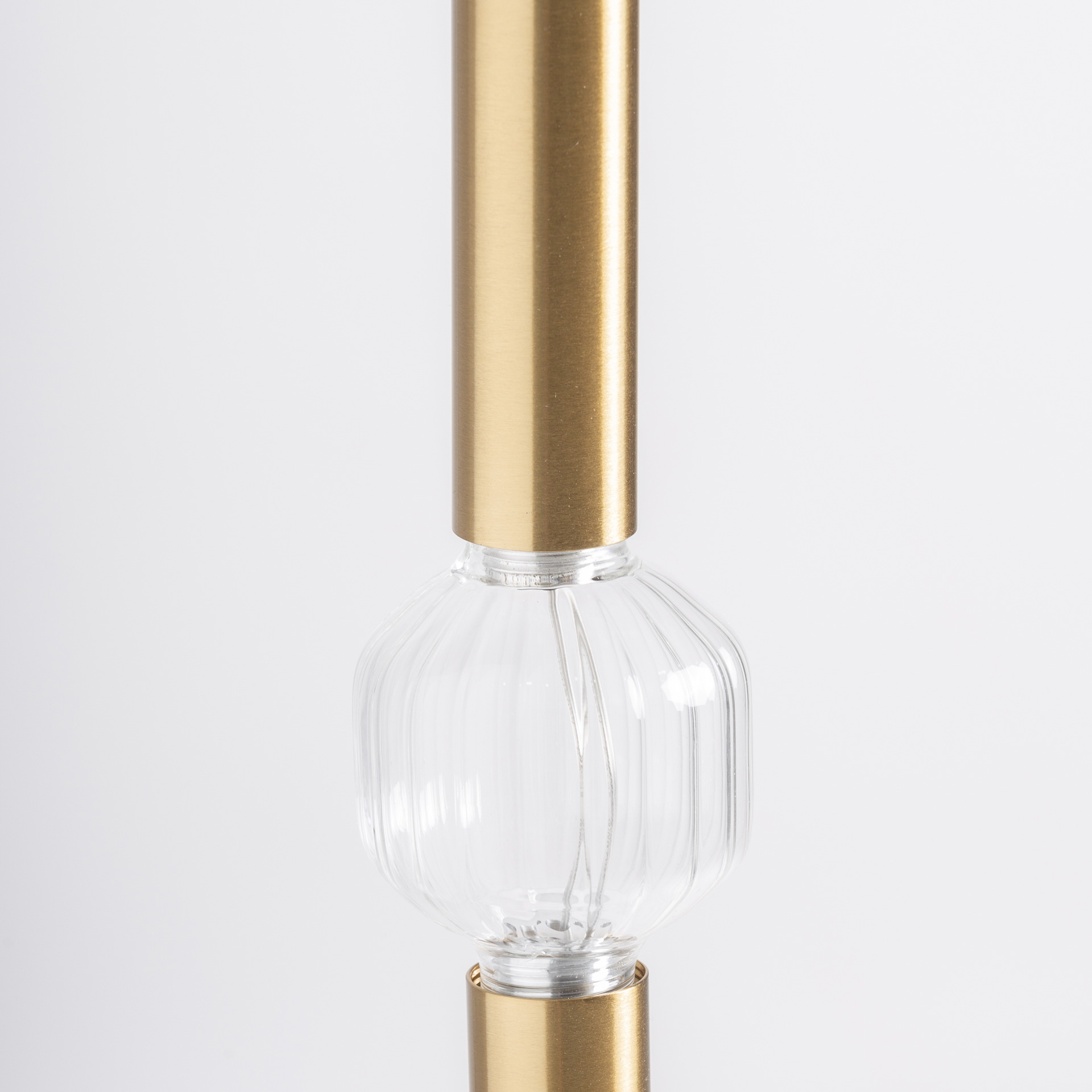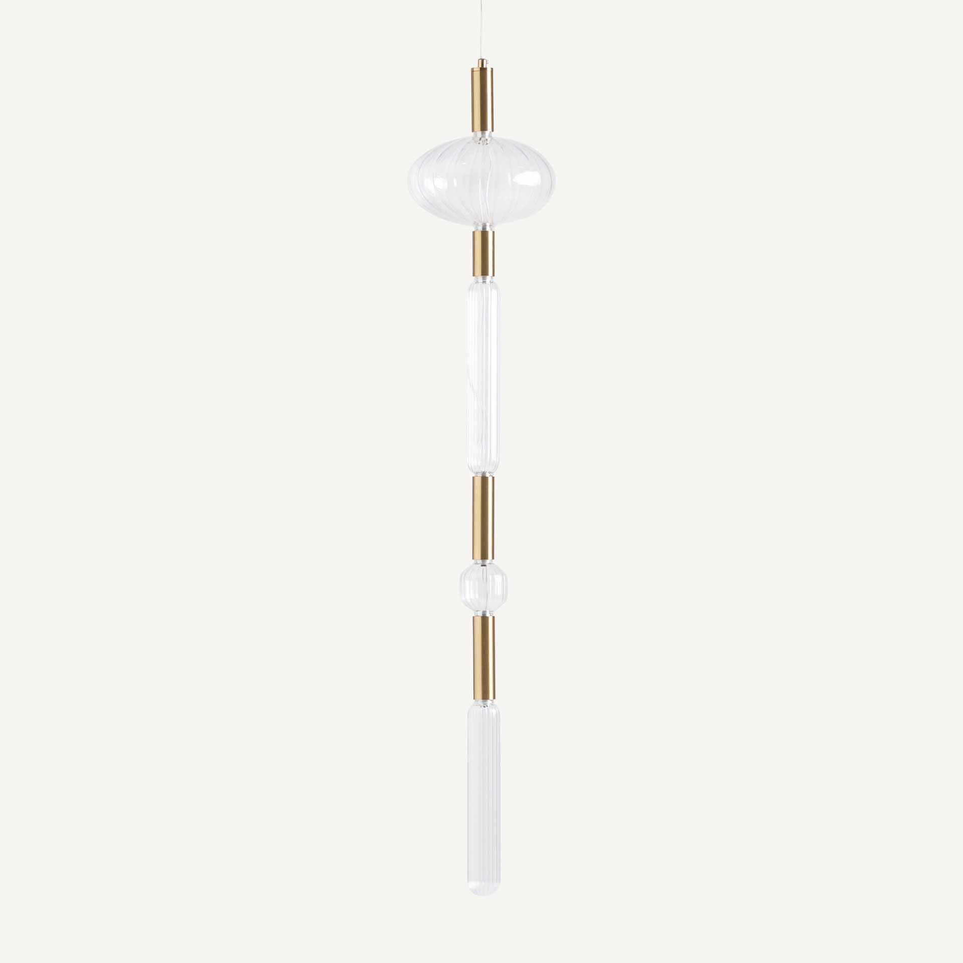 Подвесной светильник из прозрачного стекла в сочетании со сталью бронзового цвета. Ширина: 20 см, Глубина: 20 см, Высота: 110 см