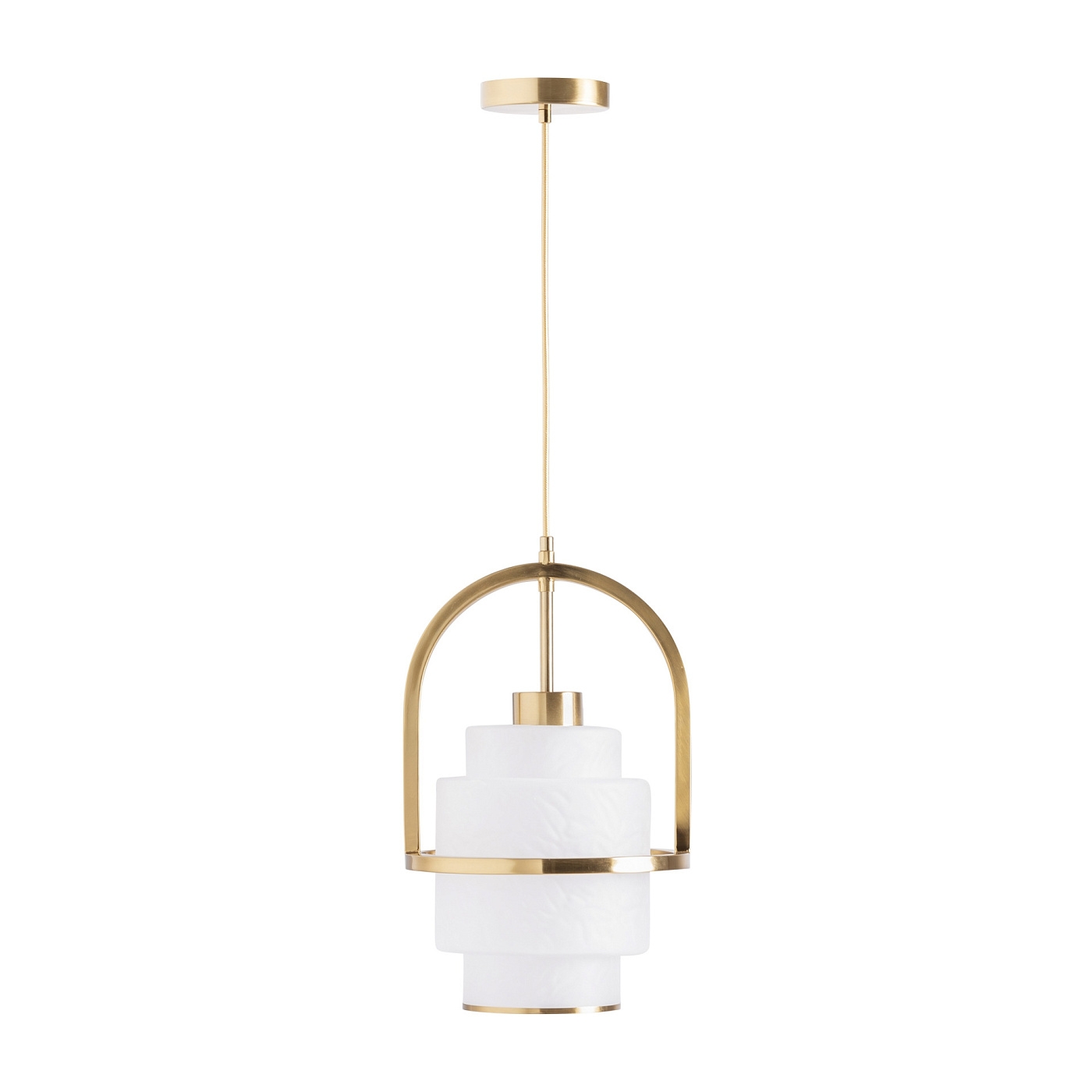 Подвесной светильник из белого стекла в сочетании со сталью бронзового цвета. Ширина: 24 см, Глубина: 24 см, Высота: 39 см