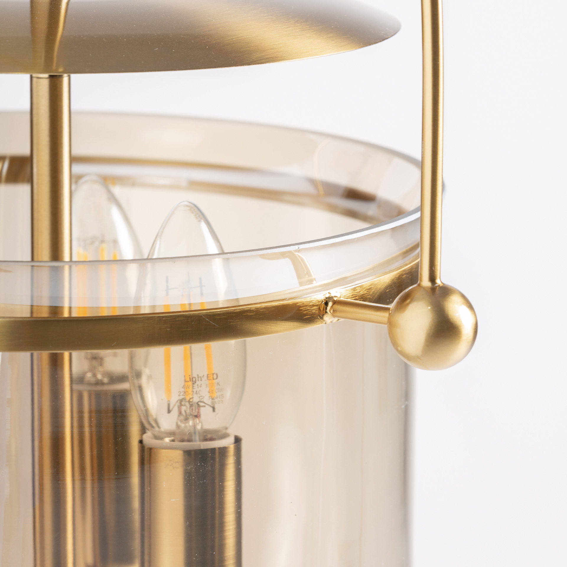 Подвесной светильник из прозрачного стекла в сочетании со сталью золотистого цвета. Ширина: 32 см, Глубина: 32 см, Высота: 58 см