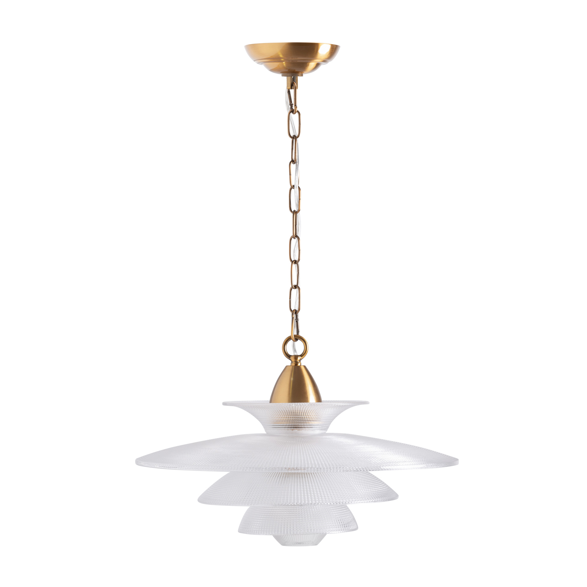Подвесной светильник из прозрачного стекла в сочетании со сталью золотистого цвета. Ширина: 48 см, Глубина: 48 см, Высота: 42 см