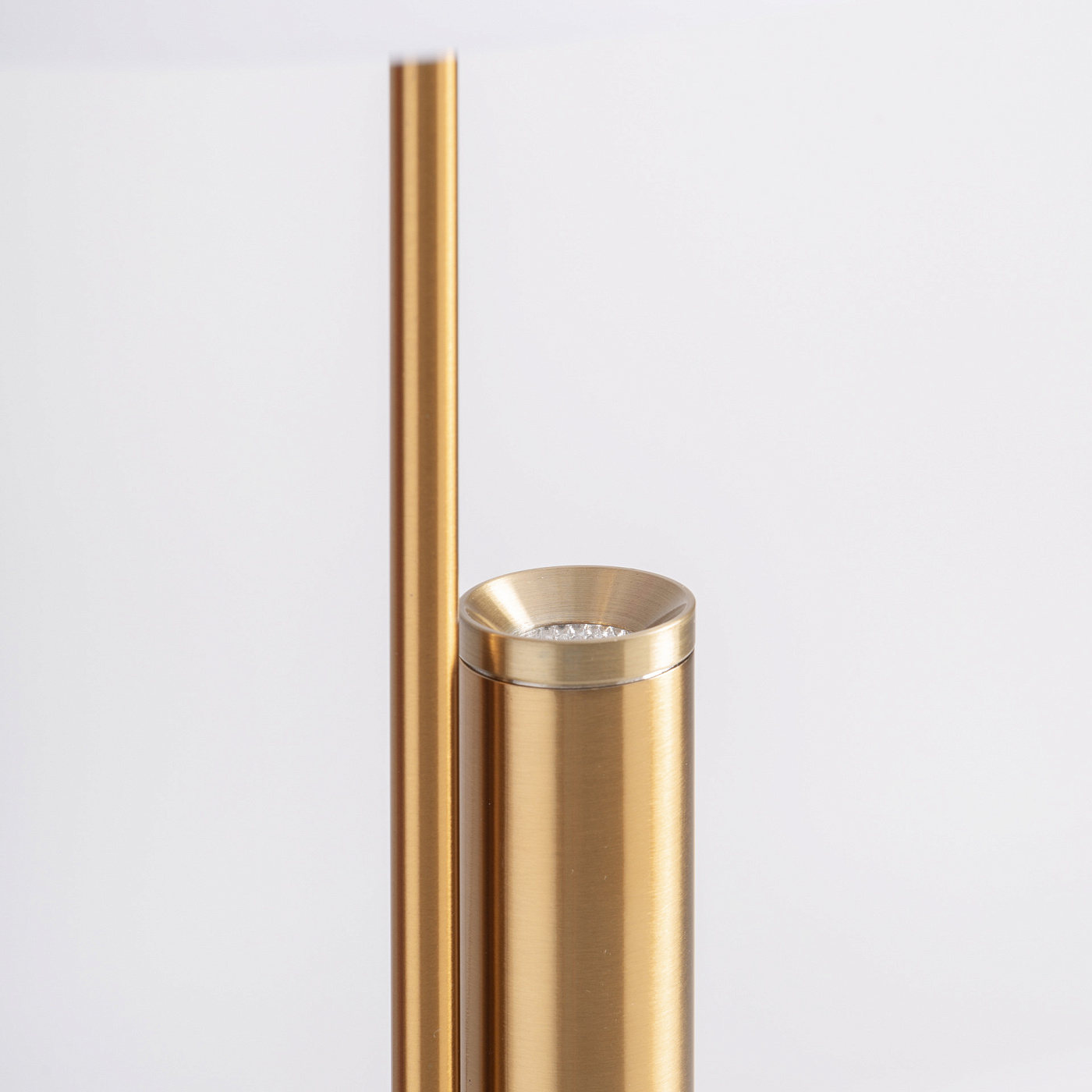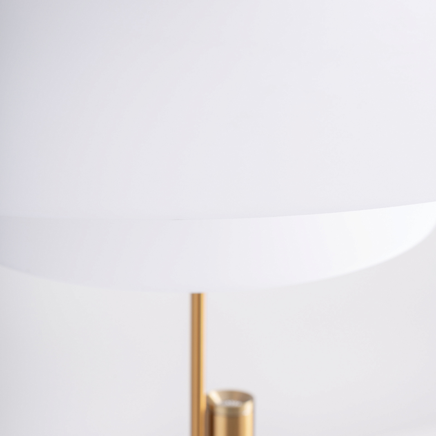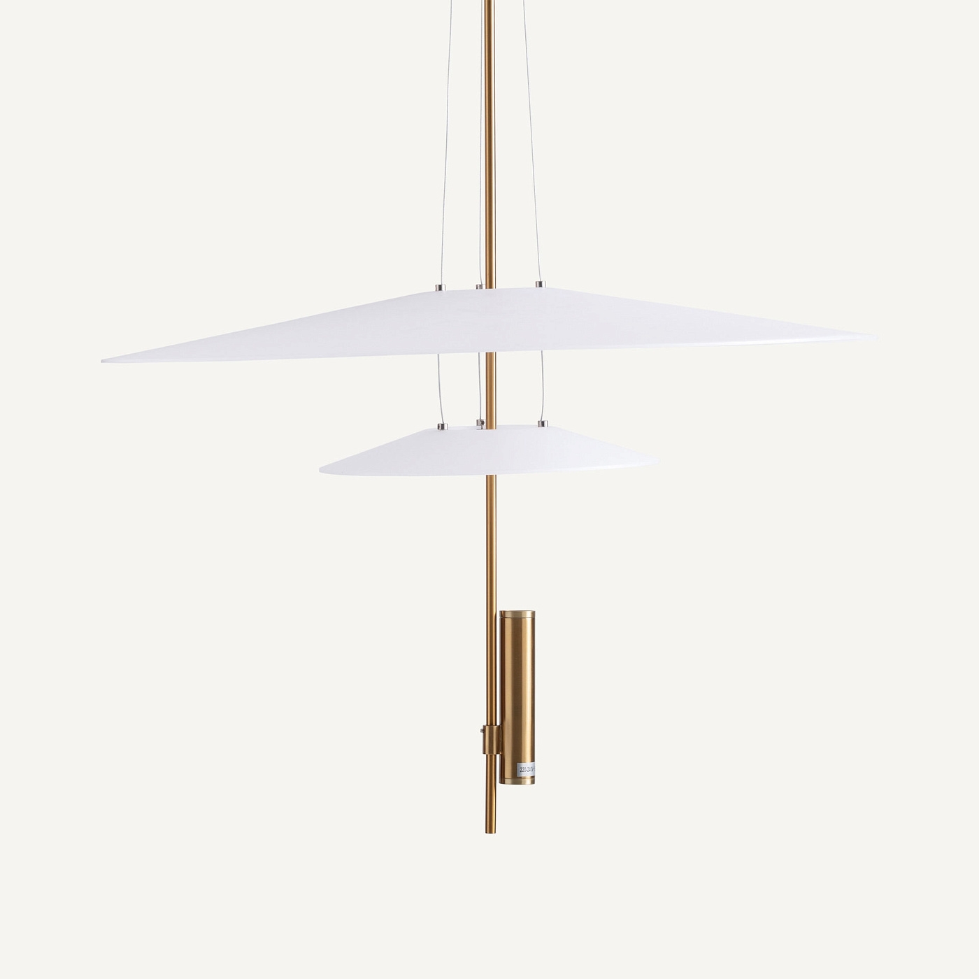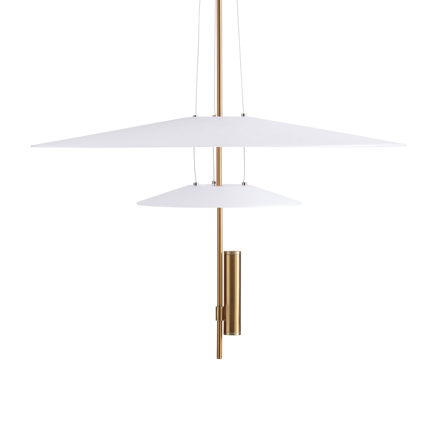 Подвесной светильник, изготовленный из белого акрила в сочетании со сталью медного цвета. Ширина: 67 см, Глубина: 67 см, Высота: 79 см