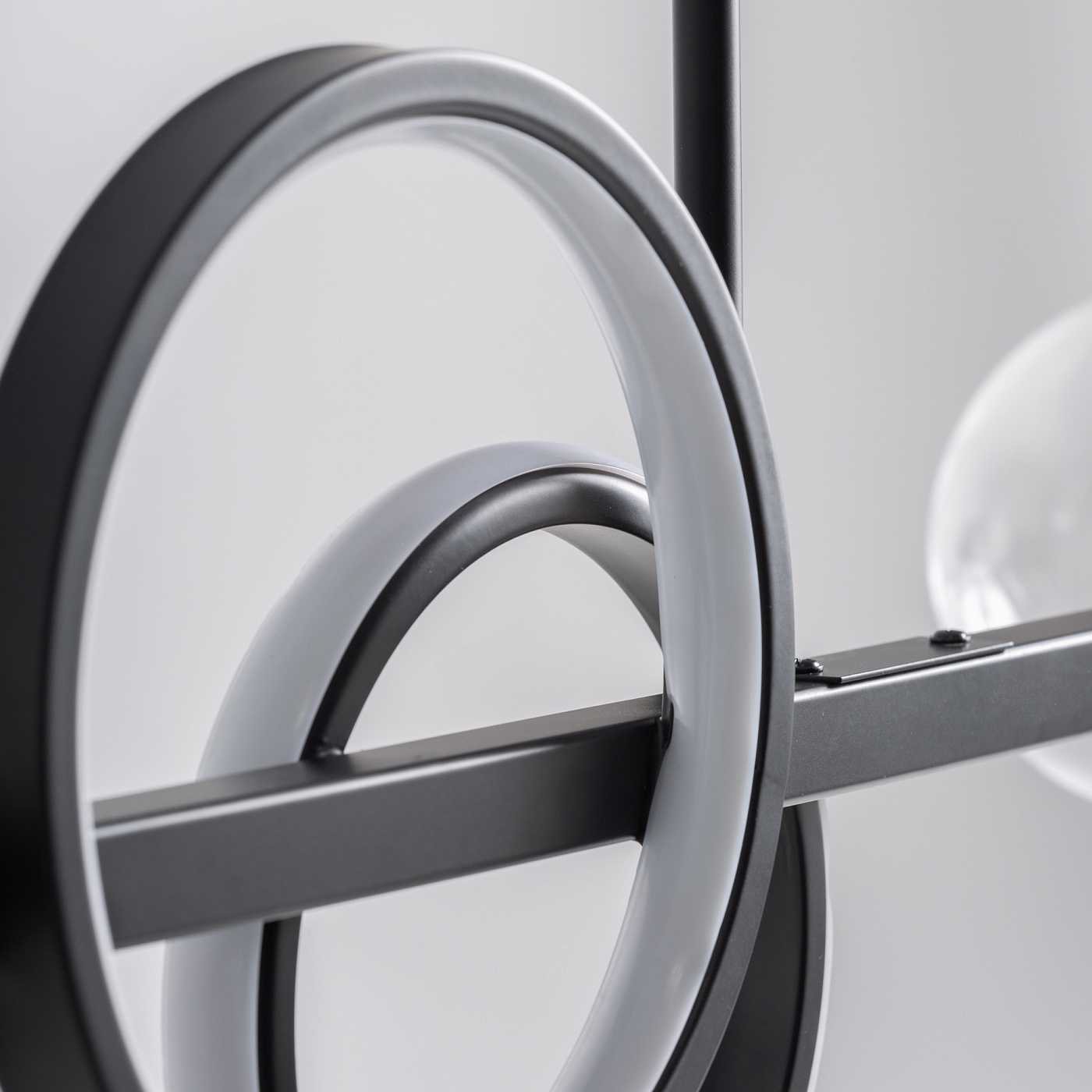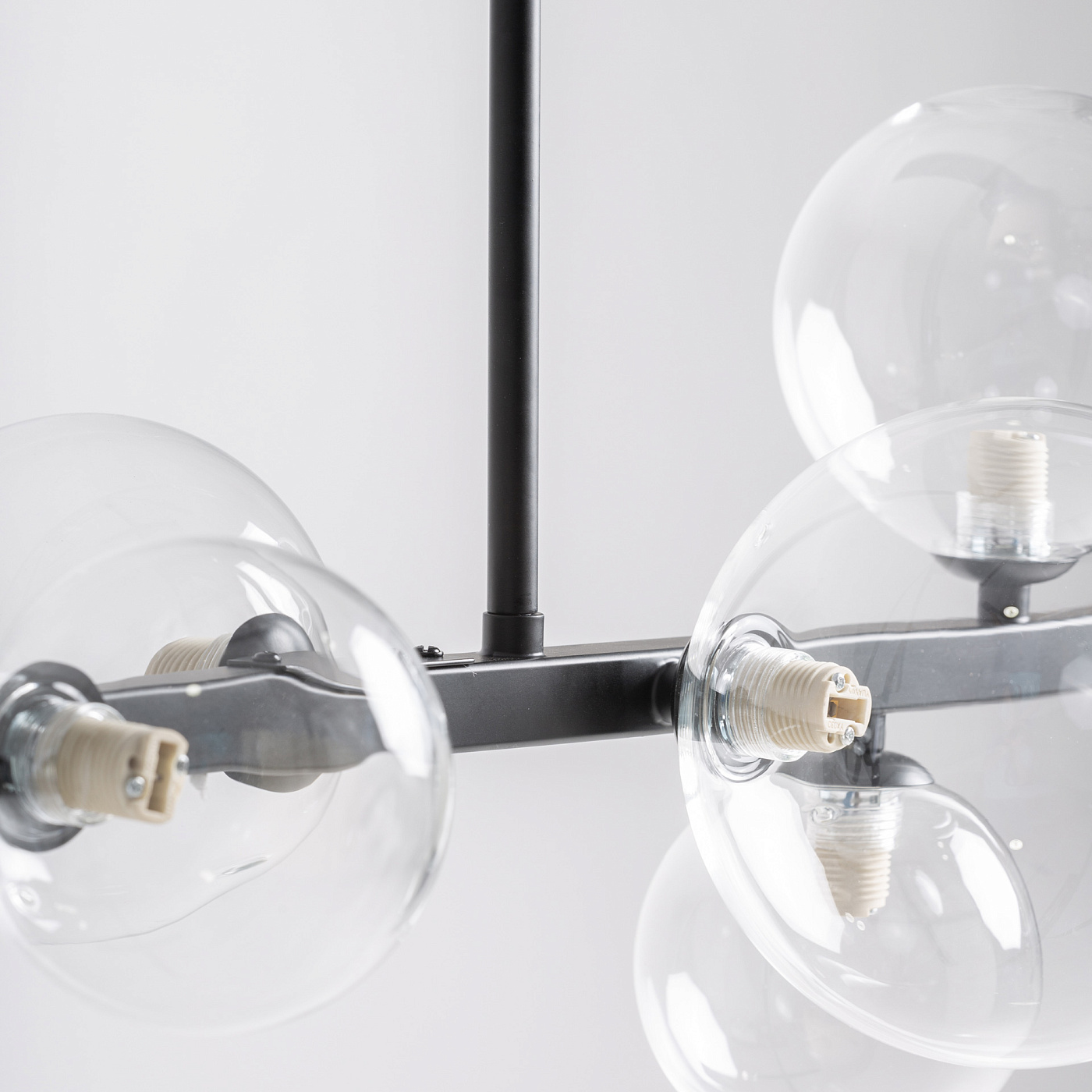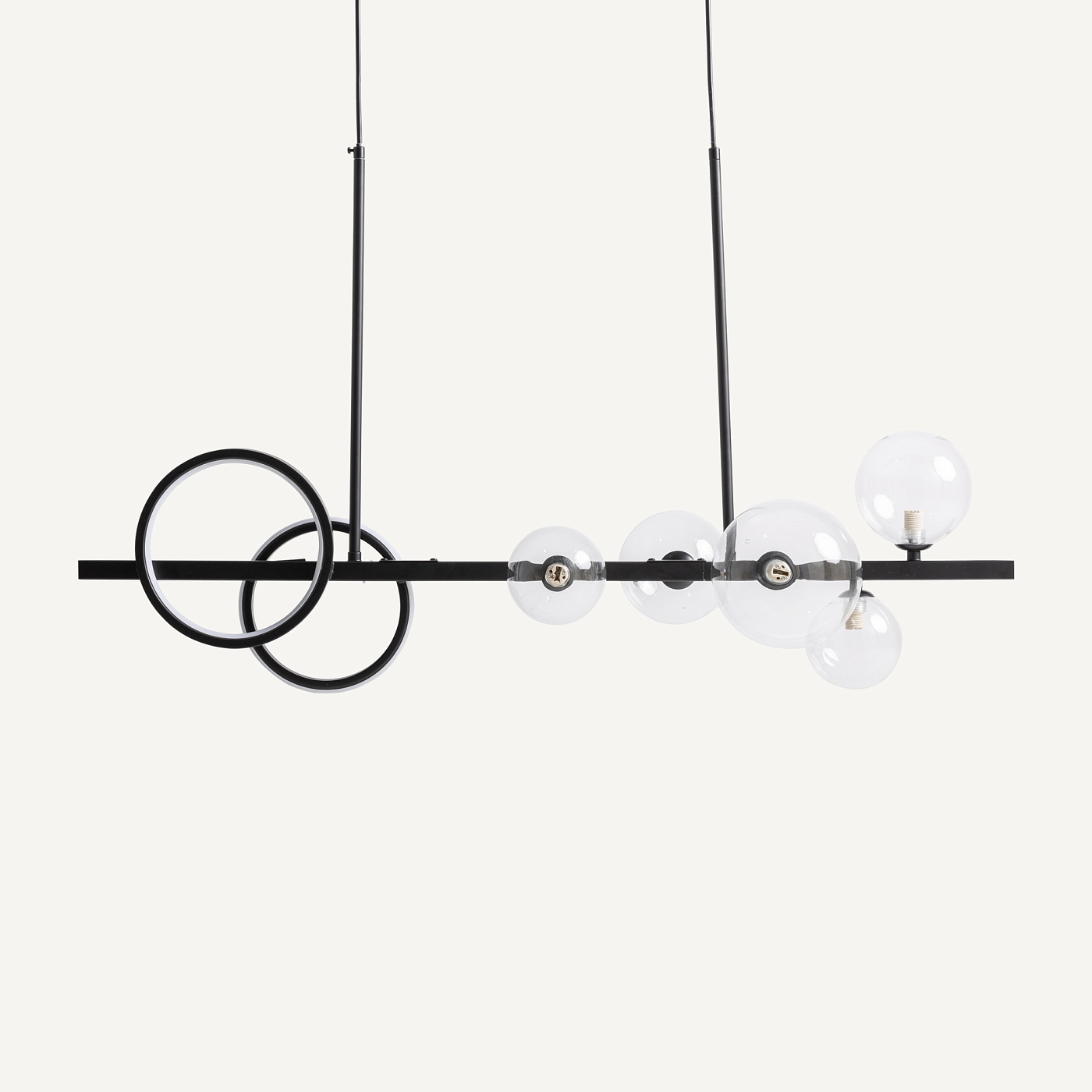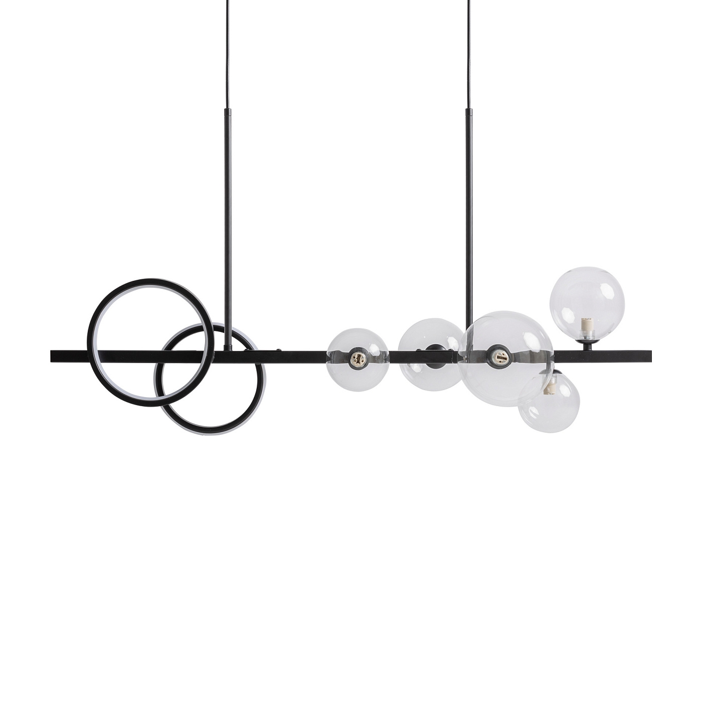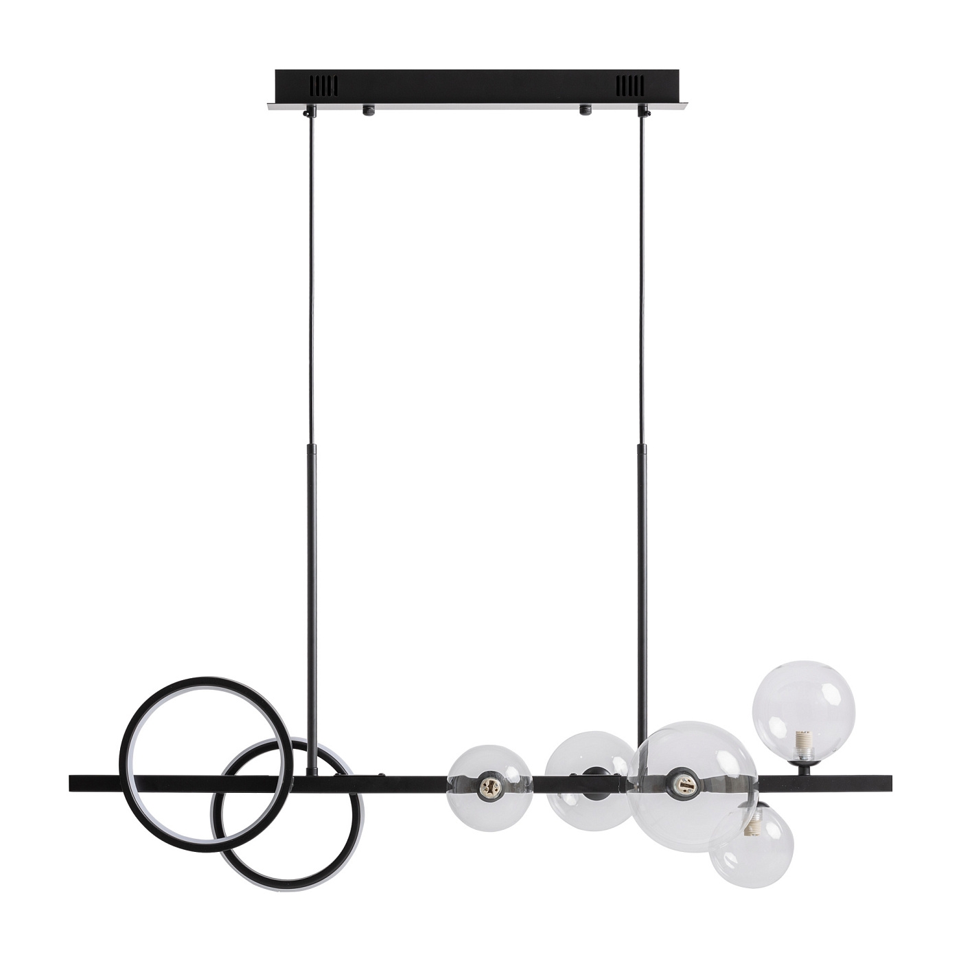 Подвесной светильник из прозрачного стекла в сочетании с черной сталью. Ширина: 95 см, Глубина: 30 см, Высота: 80 см