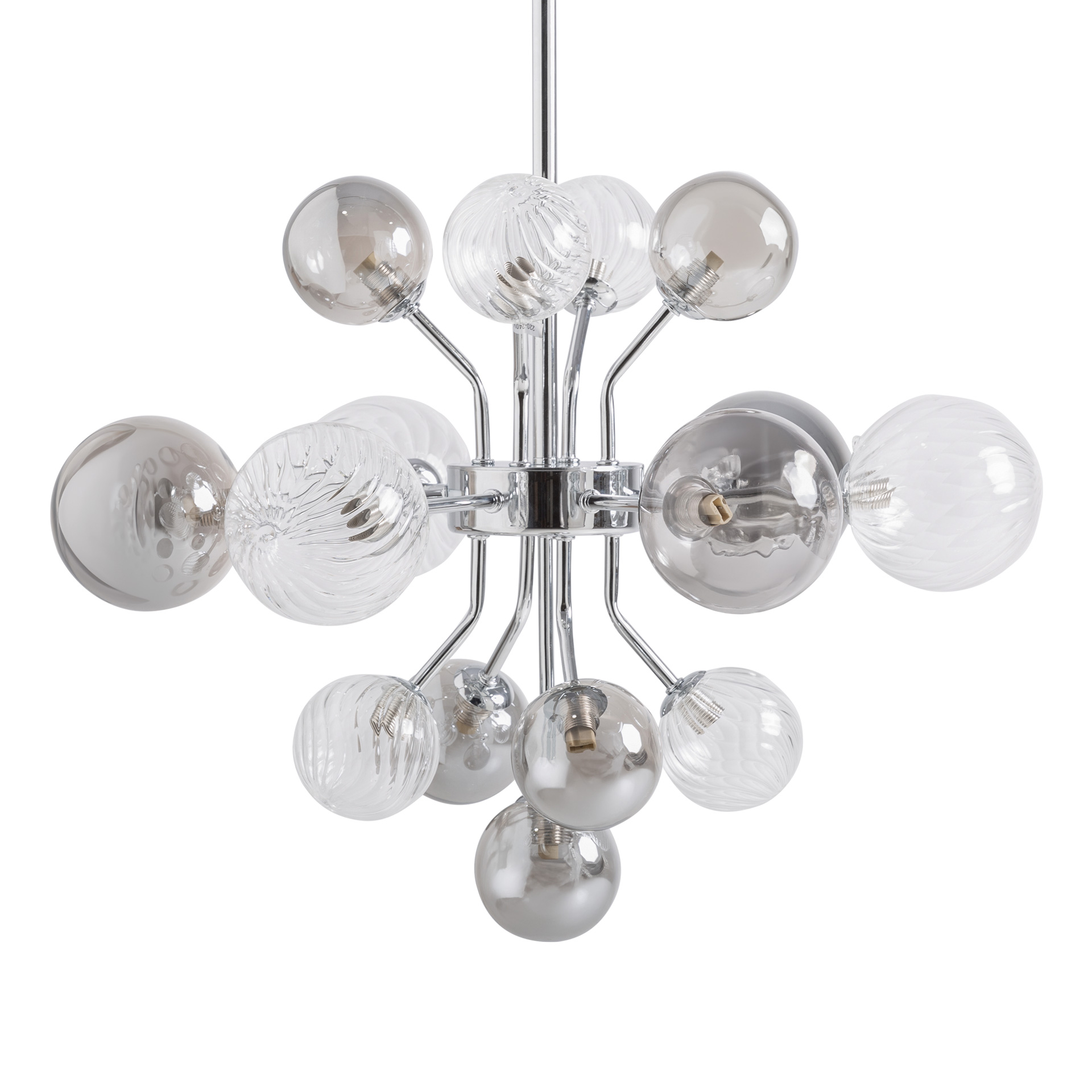 Подвесной светильник из серого стекла с дымчатой отделкой в сочетании со сталью серебристого цвета. Ширина: 60 см, Глубина: 60 см, Высота: 133 см