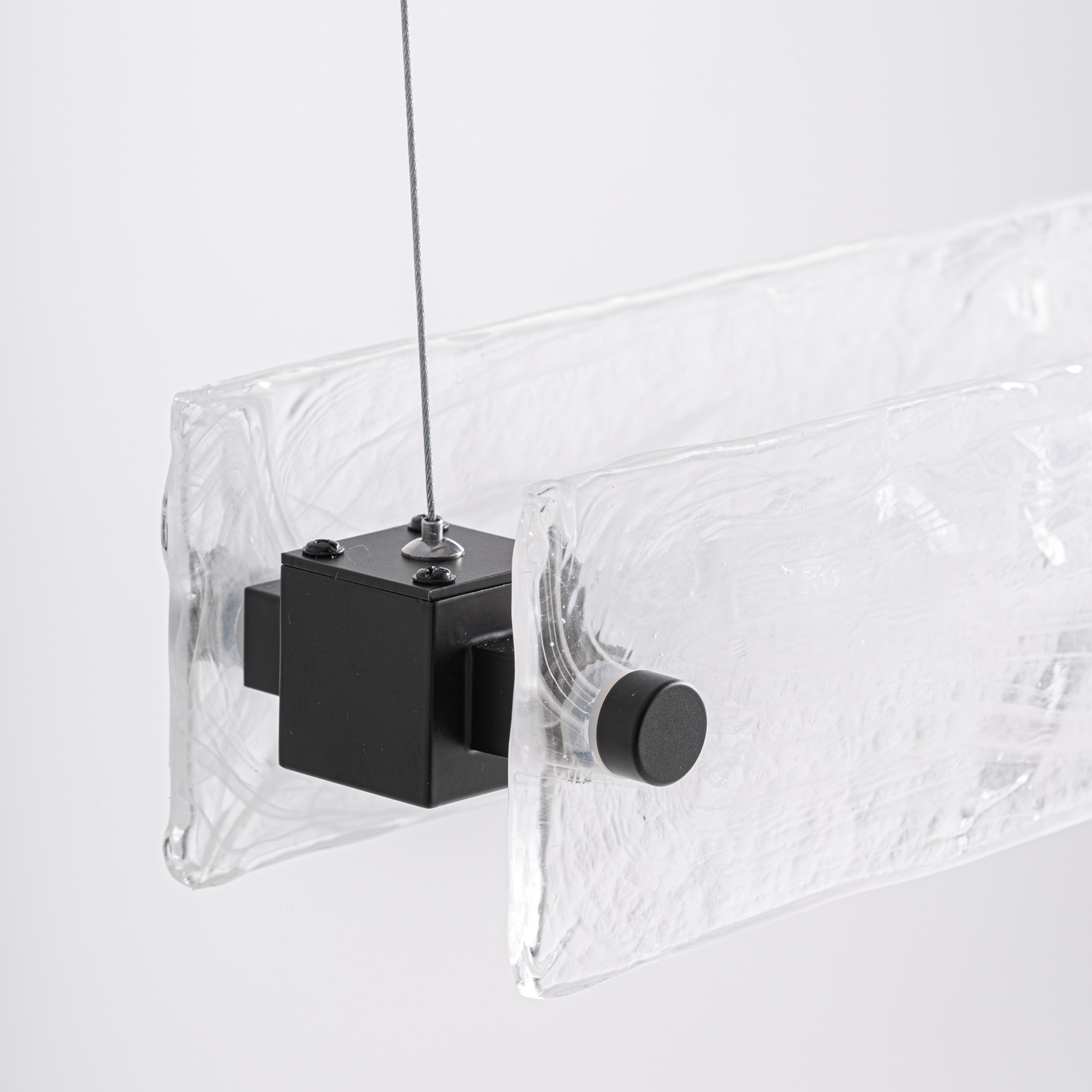 Подвесной светильник из белого стекла с фактурной отделкой в сочетании с черной сталью. Ширина: 90 см, Глубина: 10 см, Высота: 10 см