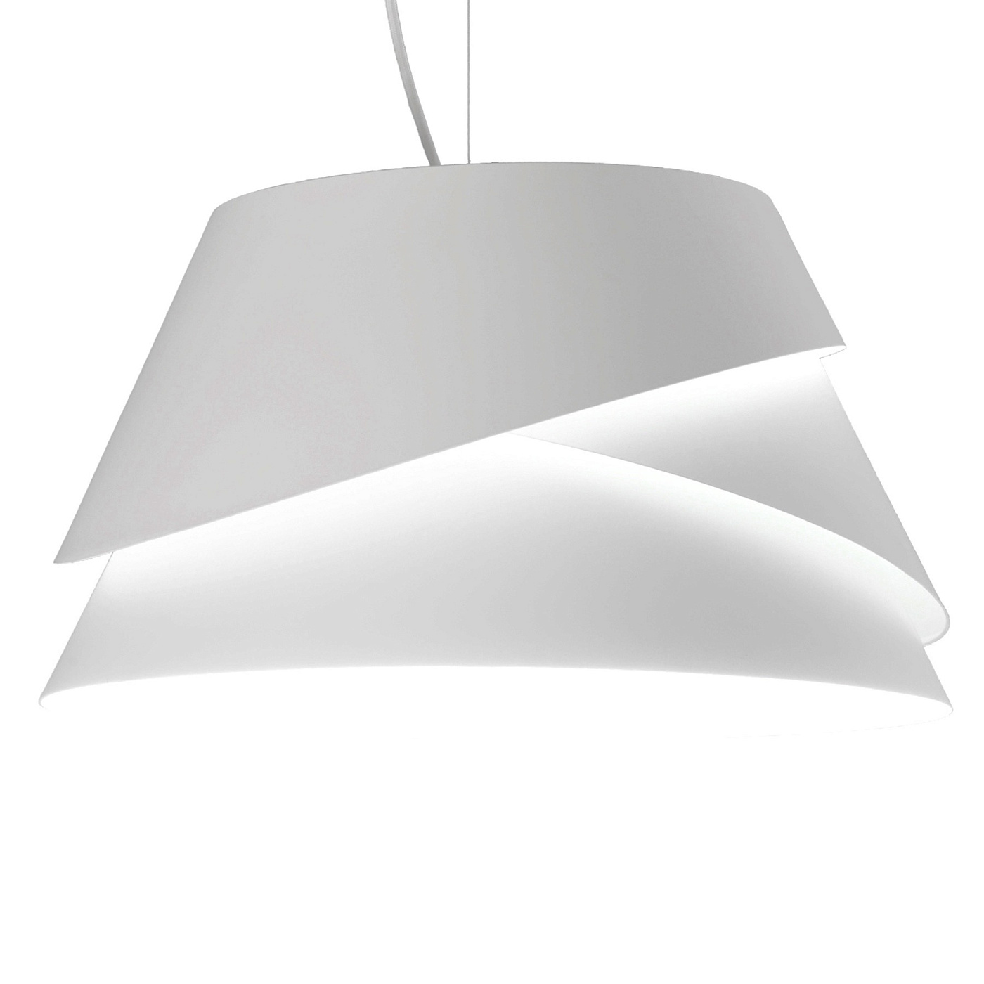 Светильник Alborаn, выполненный в белом цвете, воплощает в себе случайное движение морской волны и отражений, создаваемых проекцией, которая пропускает свет сквозь щели между металлическими экранами разного размера.