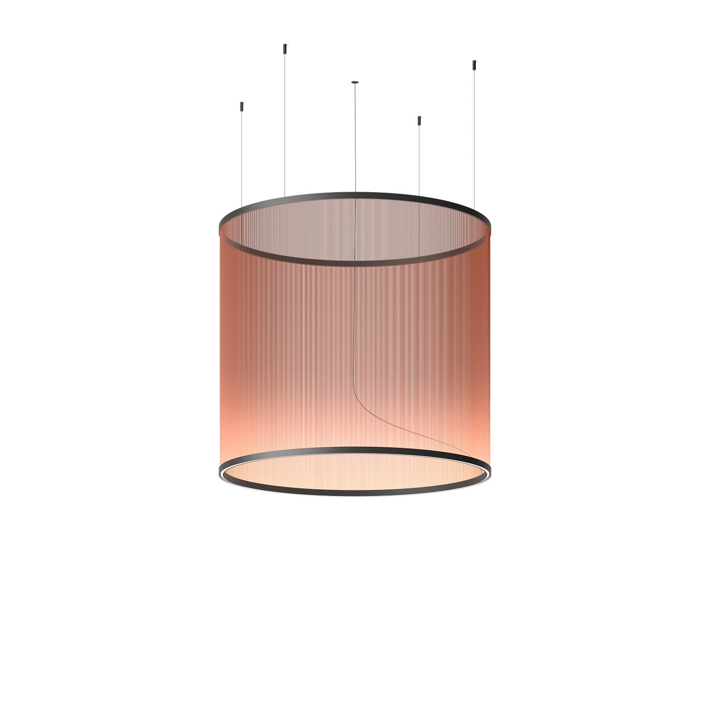 Дизайнер Array Умут Ямак (Umut Yamac) представляет коллекцию подвесных светильников различных размеров, техническое исследование потенциала нити для создания неземных динамичных подвесных световых скульптур. Подвесной светильник Array состоит из серии тонких технических нитей, туго натянутых между двумя кольцами, благодаря чему свет поднимается вверх, создавая цветовой градиент. Цилиндрическая форма и компактные размеры делают его идеальным для небольших помещений.