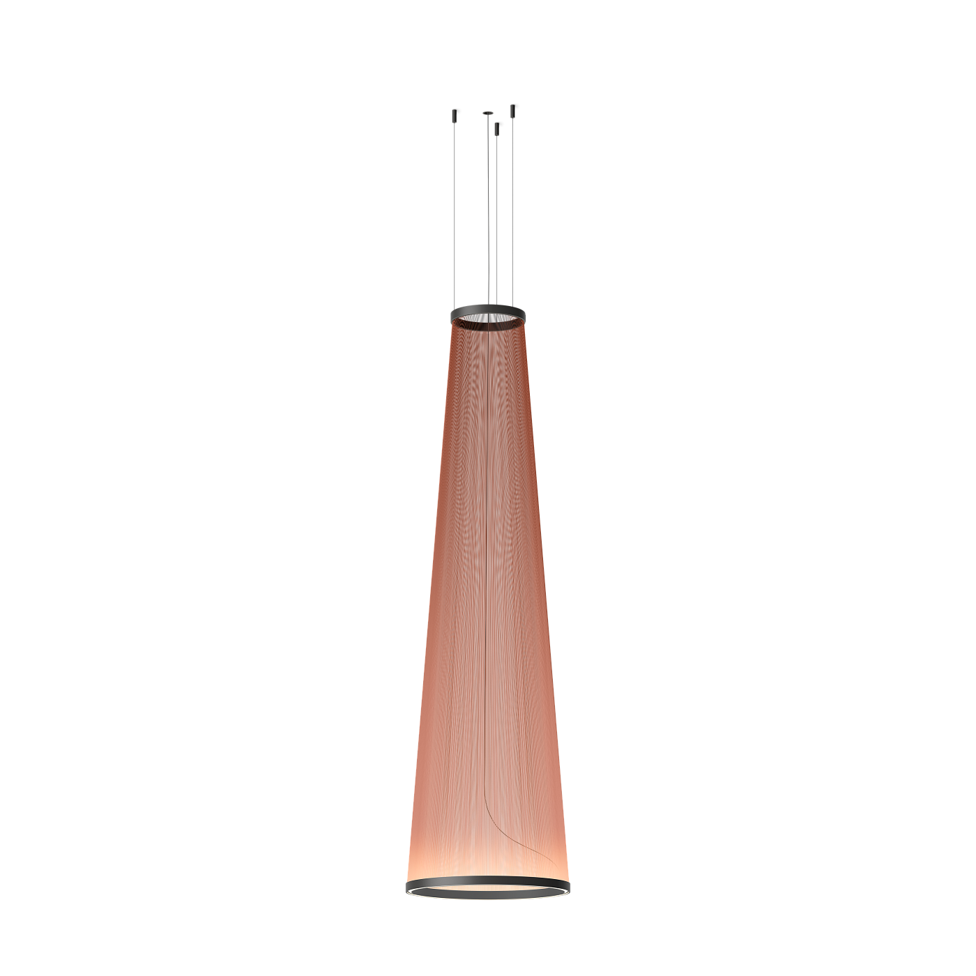 Дизайнер Array Умут Ямак (Umut Yamac) представляет коллекцию подвесных светильников различных размеров, техническое исследование потенциала нити для создания неземных динамичных подвесных световых скульптур. Подвесной светильник Array состоит из серии тонких технических нитей, туго натянутых между двумя кольцами, благодаря чему свет поднимается вверх, создавая цветовой градиент. Цилиндрическая форма и компактные размеры делают его идеальным для небольших помещений.