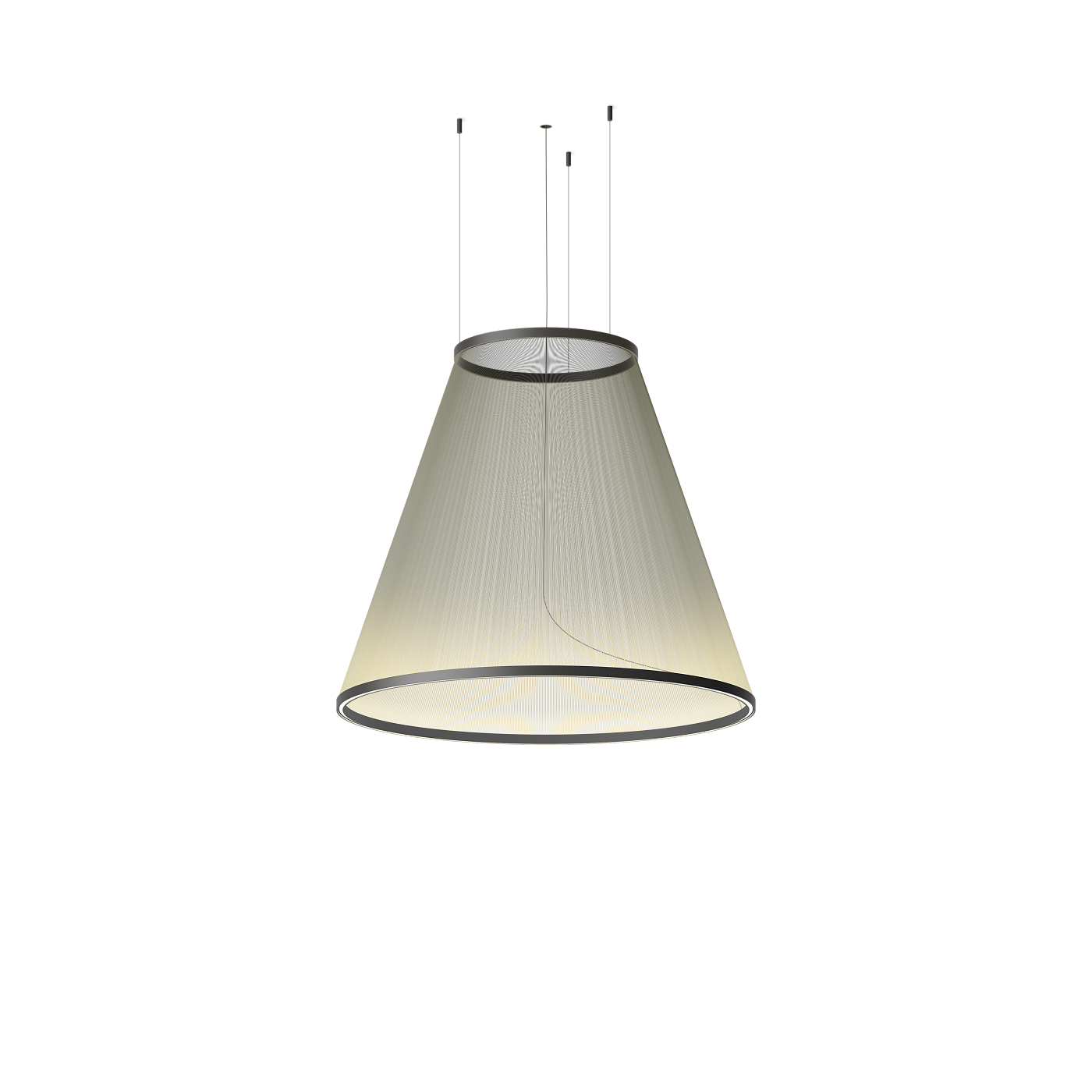 Дизайнер Array Умут Ямак (Umut Yamac) представляет коллекцию подвесных светильников различных размеров, техническое исследование потенциала нити для создания неземных динамичных подвесных световых скульптур. Подвесной светильник Array состоит из серии тонких технических нитей, туго натянутых между двумя кольцами, благодаря чему свет поднимается вверх, создавая цветовой градиент. Цилиндрическая форма и компактные размеры делают его идеальным для небольших помещений.
